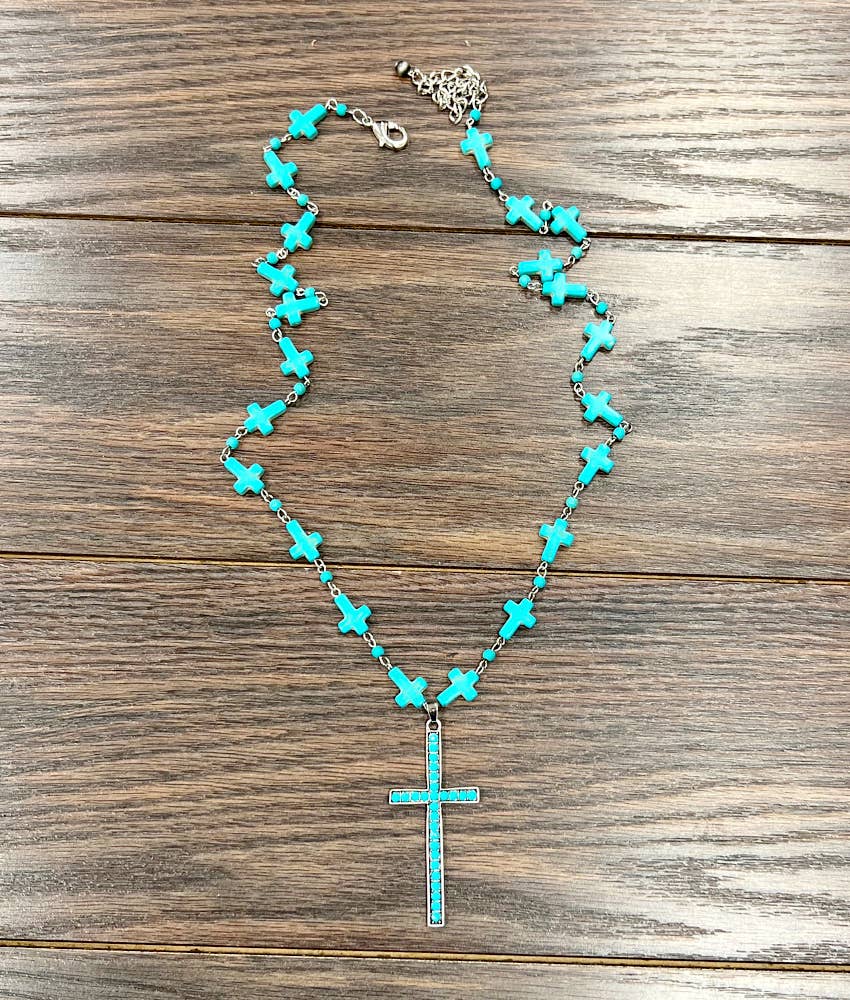 732893, Handgefertigte 60" Kreuz Türkis Halskette