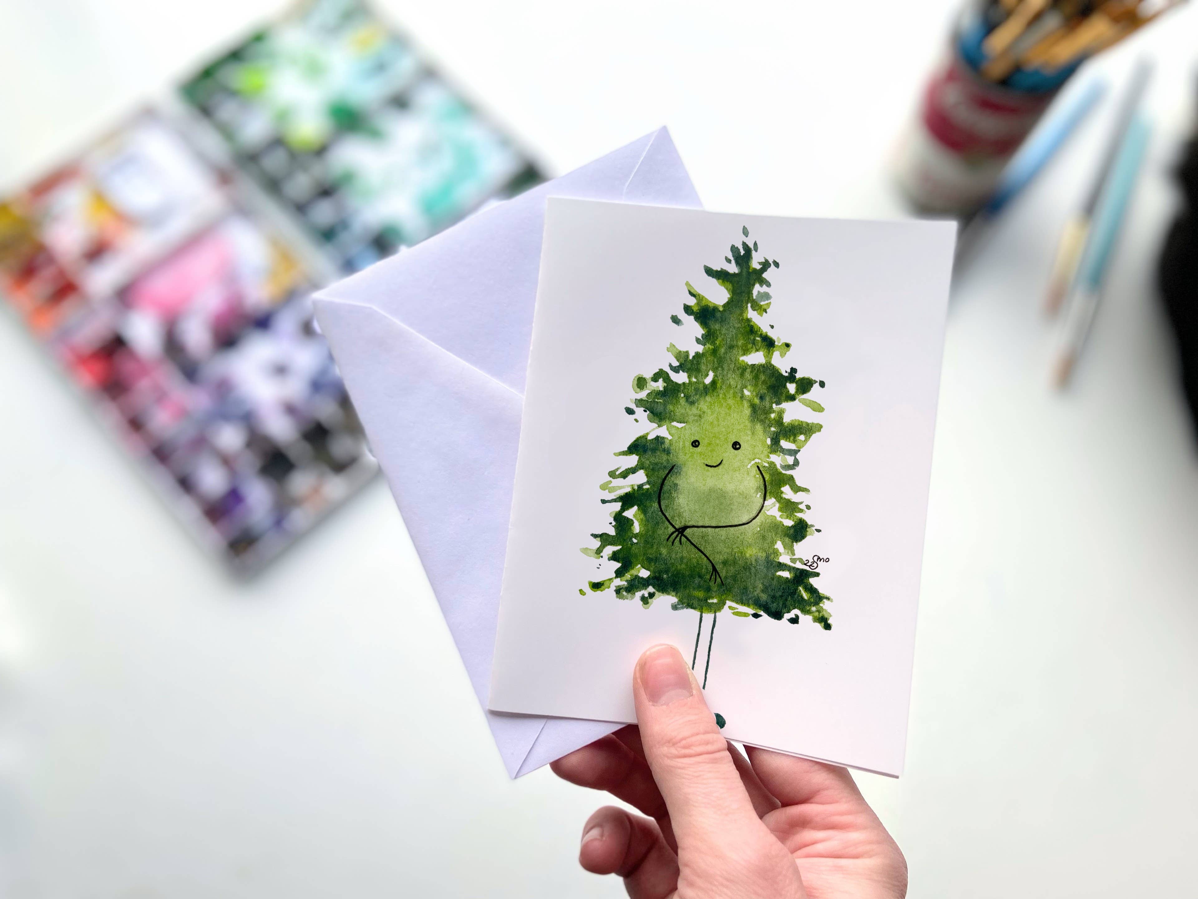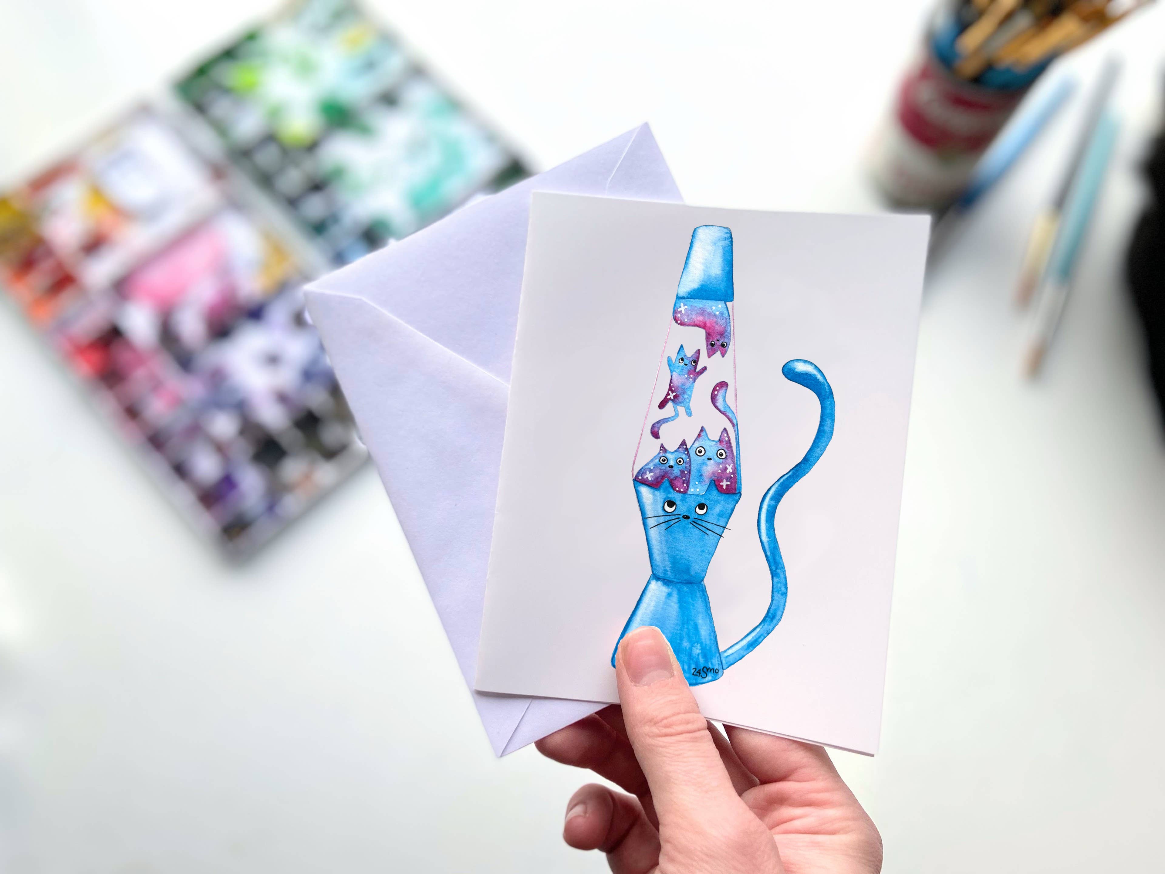 Servieren Sie gemütlichen Charme mit dieser Calico-Katze-Chai-Tee-Grußkarte, erstellt aus original handgemalter Aquarellkunst von Owlfeathers Watercolor. Mit einer süßen Calico-Katze, die sich neben einer dampfenden Tasse Chai zusammenrollt, ist dieses Design perfekt für Teeliebhaber, Katzenenthusiasten und alle, die ein wenig Wärme und Verspieltheit in ihrer Papeterie genießen. Kartenspezifikationen: • A2-Kartengröße (10,8 cm x 14 cm) • Weißer Umschlag (11,1 cm x 14,6 cm) • Glänzende Außenseite und matte Innenseite • Verpackt in transparenter Zellophanfolie Ideal für Cafés, Buchläden, Geschenkläden und Boutiquen mit gemütlichem oder Cottagecore-Flair. Jede Karte wird in unserem Heimstudio in den Bergen von Pennsylvania von Hand gedruckt, gefaltet und verpackt und bietet ein in kleinen Mengen hergestelltes, direkt vom Künstler zum Verbraucher geliefertes Produkt, das mit Sorgfalt hergestellt wird. Tags Herbst, Buchladen, Calico, Katze, Chai, gemütlich, Cottagecore, niedlich, Herbst, Katze, Geschenkladen, handgemachtes Gefühl, heißes Getränk, Indie-Kunst, Originalkunst, saisonal, kleine Menge, Papeterie, Tee, warm, verspielt, Winter