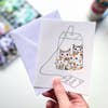 Calico-Katze Chai-Tee Grußkarte – Gemütliche Aquarellkunst im Großhandel