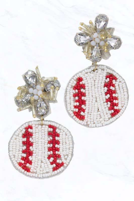 Schlagen Sie mit diesen perlenbesetzten Baseball-Ohrringen einen Homerun! Leicht, lustig und perfekt für Spieltage oder sportlich-schicke Outfits. Größe: 6,6 cm x 2,8 cm Hergestellt in China
