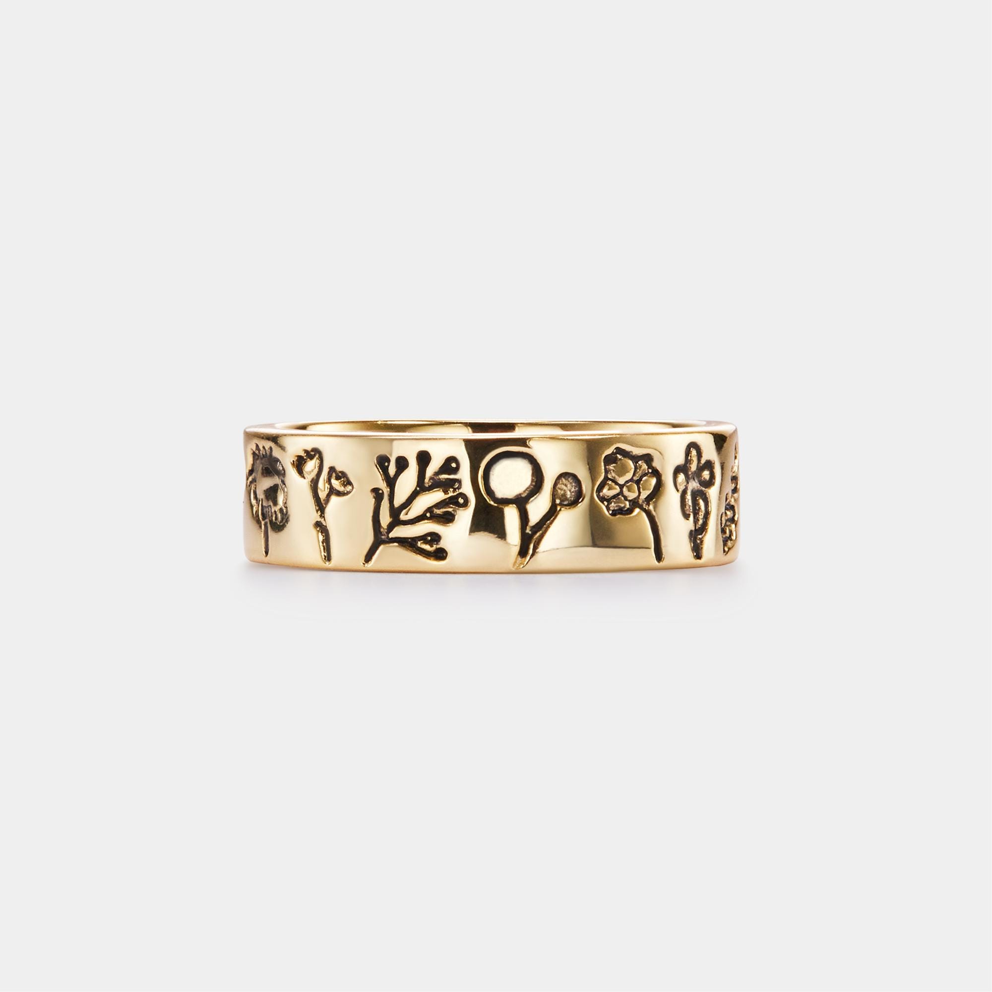 Beschreibung und Einzelheiten In der nordischen Mythologie ist das Gänseblümchen Freyas heilige Blume. Freya ist die Göttin der Liebe, Schönheit und Fruchtbarkeit, und als solche symbolisierte das Gänseblümchen Geburt, Mutterschaft und Neuanfänge. • Material: massives 925er-Sterlingsilber • Oberfläche: Hypoallergen ∙ Vergoldet • Abmessungen: 4 mm breit, US-Größe 6-8 verfügbar • Alle unsere Arbeiten werden mit Liebe von Hand nach Maß gefertigt