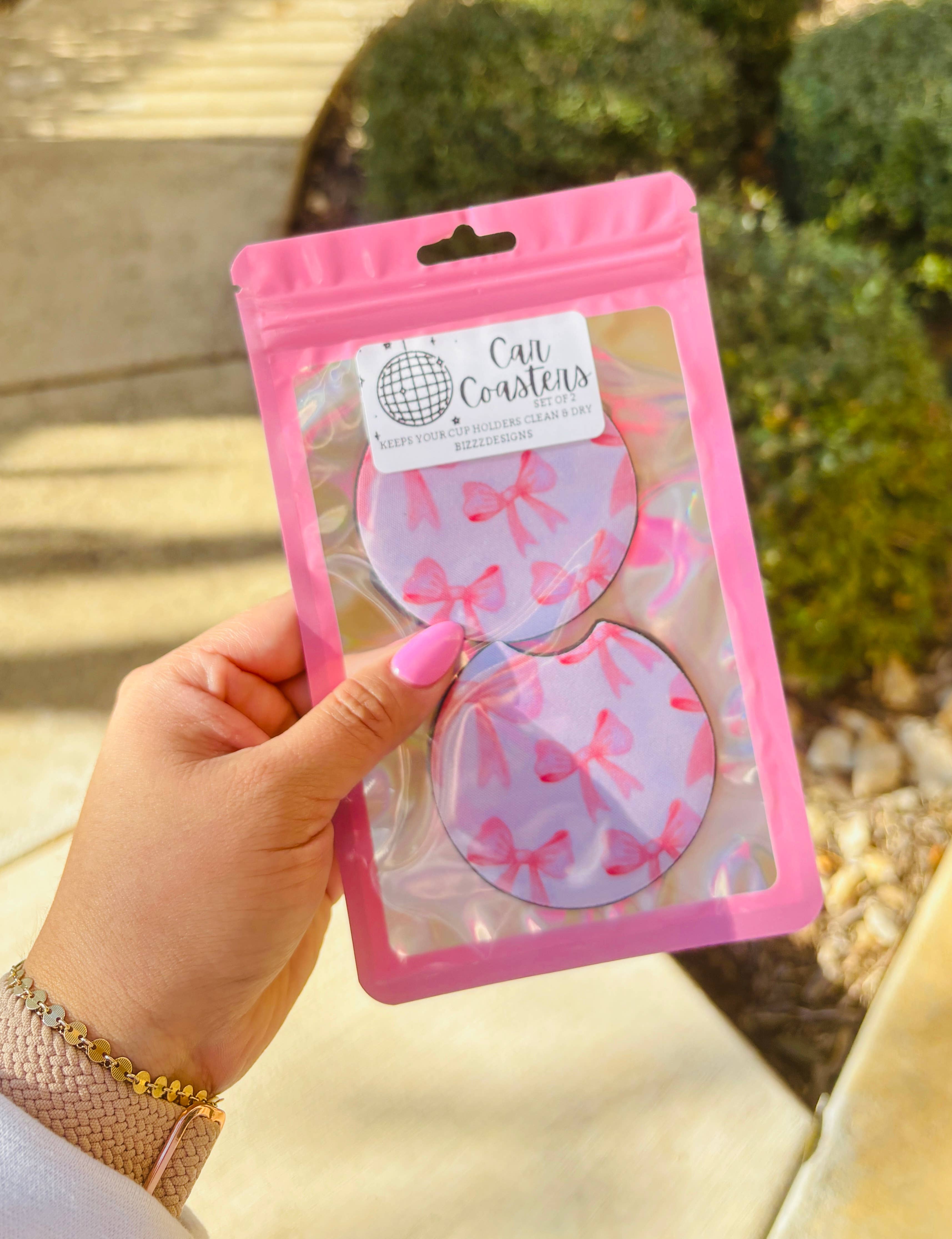 Coquette Autountersetzer in Rosa mit Schleife | Autountersetzer mit Bogen, 5er-Set