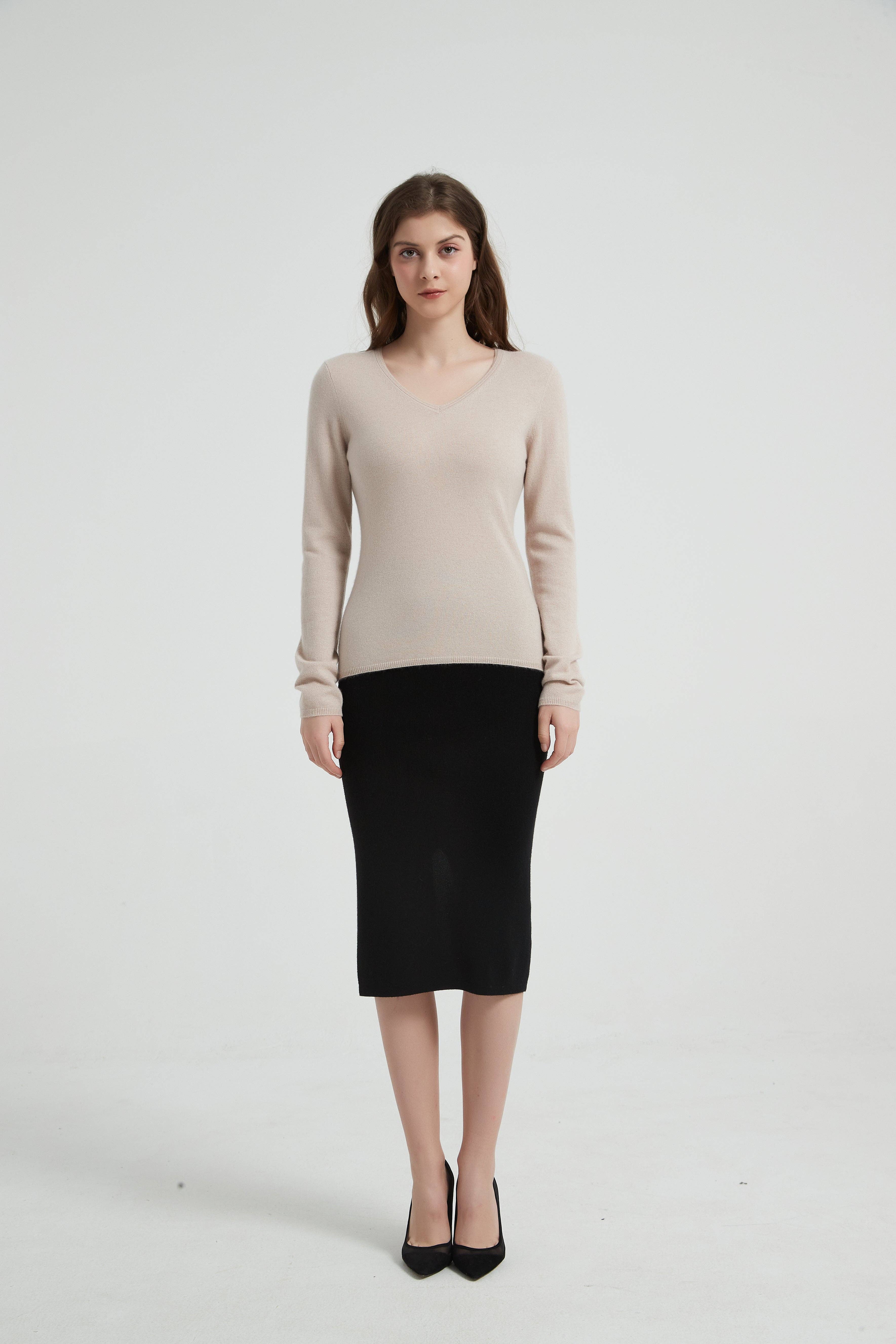 Damen-Pullover mit V-Ausschnitt aus Cashmere der Güteklasse A im Großhandel