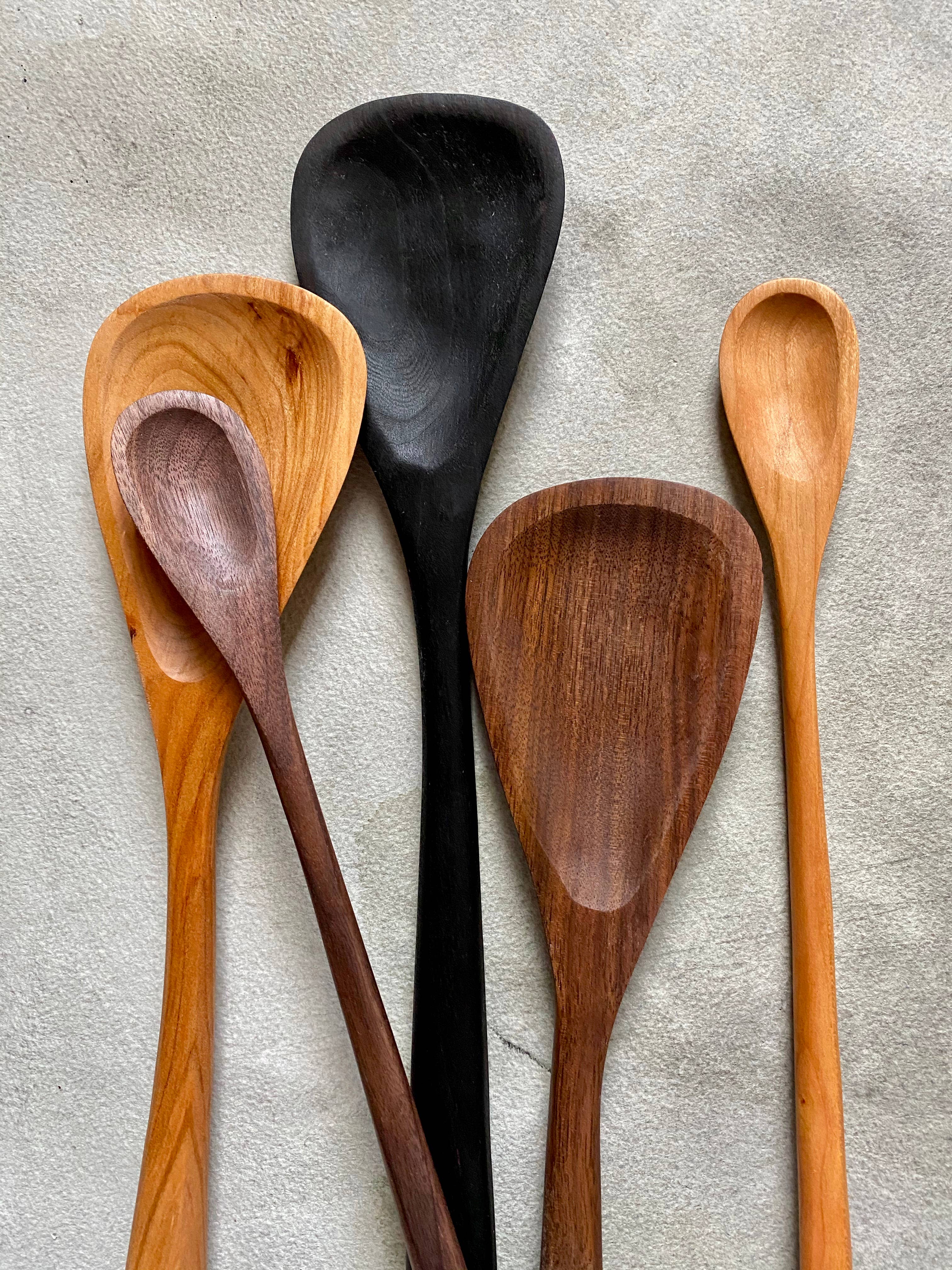 Dieser fußlange Löffel ist ideal, um in Marmeladengläser zu gelangen oder Ihren Eistee und Ihre Cocktails zu rühren. Handgefertigt mit einer hausgemachten Mischung aus lokalem Bienenwachs und rohem Leinsamenöl. Jedes Stück wird individuell angefertigt und kann leicht von dem abgebildeten abweichen. Erhältlich in verkohltem Ahorn, Walnuss und Kirsche. Abmessungen 12 „x 2" x 1“.