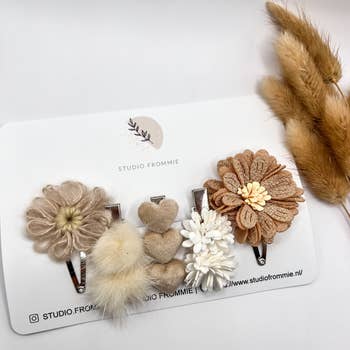 Die meisten! Unsere weichsten, flauschigsten und größten Blumen-Clips. Hoch gestapelt mit weichem, schäbigem Stoff, der an einer Krokodilklemme angebracht ist. Abmessungen: 5 „x 5" x 2 W.