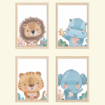 Set mit 3 Wandbildern für das Kinderzimmer, Tierkollektion Safari im Großhandel