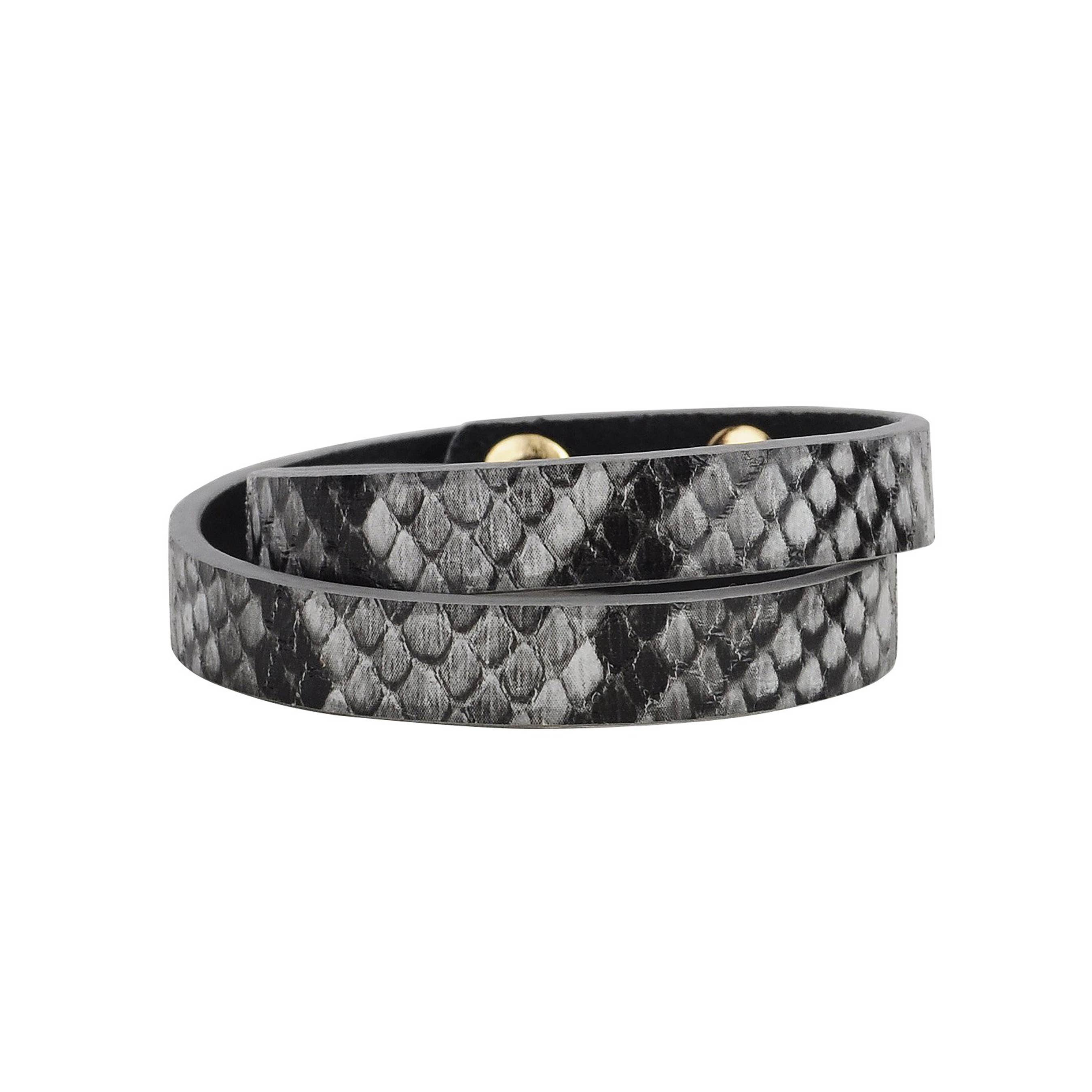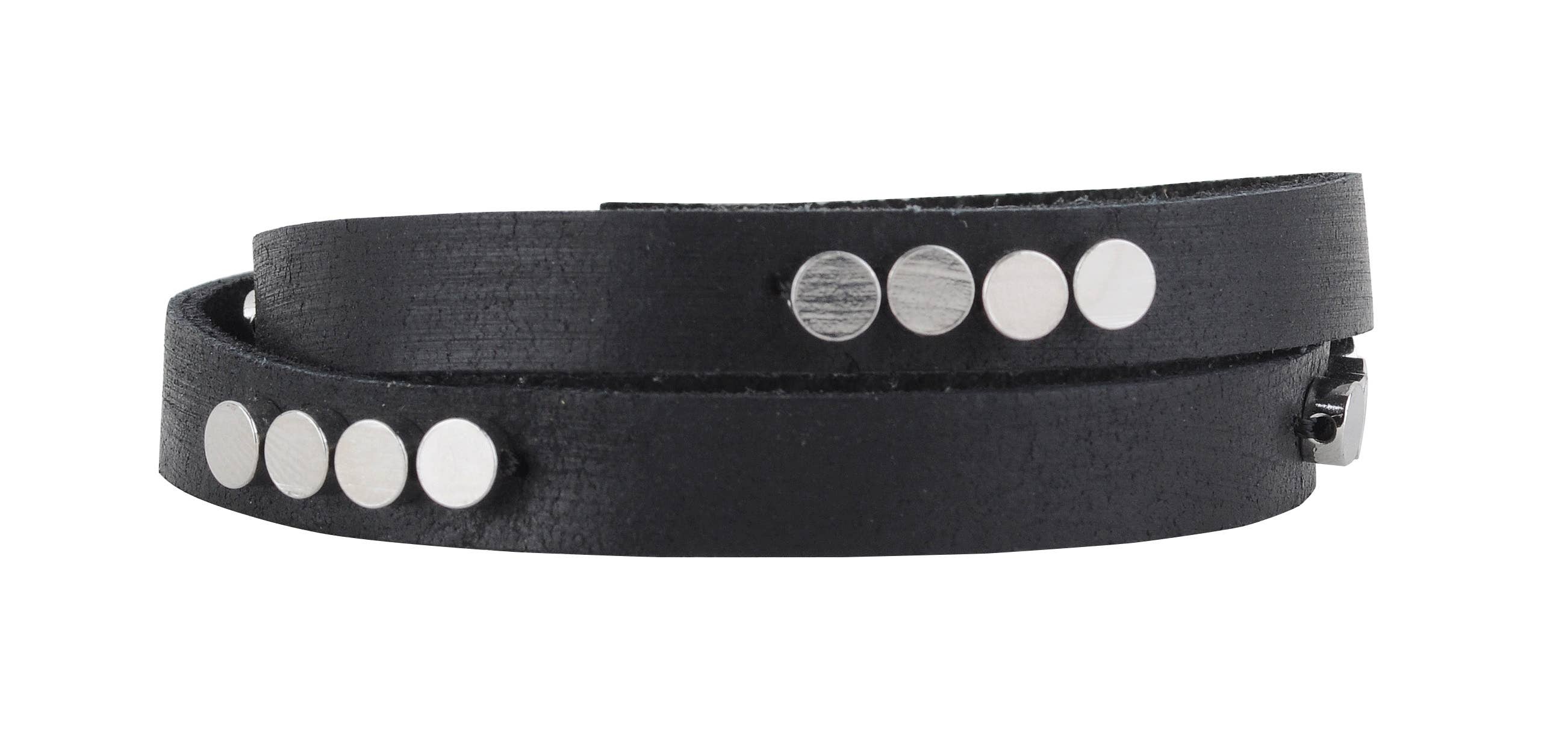 Ein doppelt gewickeltes Lederarmband mit verschiedenen farbigen Nieten, das einen Rocker-Look hervorhebt und dennoch sauber für einen Mod und einen klassischen Look ist. Abmessungen: 15,5 „L x 3/8" W Schließung:Einrasten Prepack: 4 Stück, gleiche Farbe