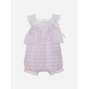 Mini-Checks-Strampler mit Smokkragen - Rosa