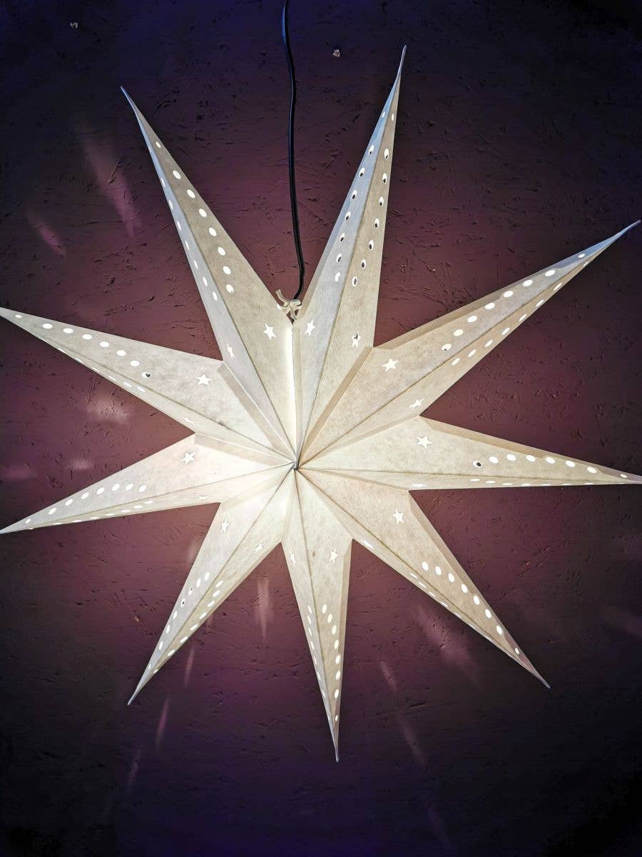 Rot/Schwarz mit rotem Stoffeinlage 9 Zeiger Ø 17 Zoll Tiefe 6,5 Zoll Diese farbenfrohe und magische Sternlinie wirbelt und erhebt sich aus der Dunkelheit, um in roten feurigen Tönen oder eisigen Kühlen zu leuchten. Jeder handgefertigte Papierstern wird mit einem vorinstallierten klaren 12-Fuß-Kabel, einer energiesparenden LED-Glühbirne und einem 5V AC-Adapter geliefert. Was Artschatz Sternlichter einzigartig macht: Jeder Stern wird in Indien handgefertigt und hier in New York zusammengebaut. Wir überprüfen jeden sorgfältig auf Qualität. Im Gegensatz zu den meisten Papiersternen hängen Artschatz Sterne symmetrisch mit der Spitze nach oben – ein traditionelles Symbol für Schutz und Glück. Das vorinstallierte klare Kabel tritt durch die obere Spitze aus, um die richtige Ausrichtung und schnelle Einrichtung zu gewährleisten, während andere ungeschickt von einer Seitennaht hängen. Jeder Stern verfügt über ein schlankes Kabel, eine energieeffiziente LED-Glühbirne, einen 5V USB AC-Adapter und ein einzigartiges magnetisches Verschlusssystem für eine einfache, sichere Montage.
