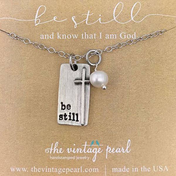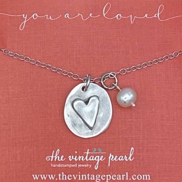 Handgestempelt mit unserer Kalligraphieschrift und handgegossen in feinem Zinn und mit einer Süßwasserperle versehen und eine 18 in plattierte Gliederkette aufgehängt. Solid Kraft (Senf) Card lautet: „Wähle die Freude“