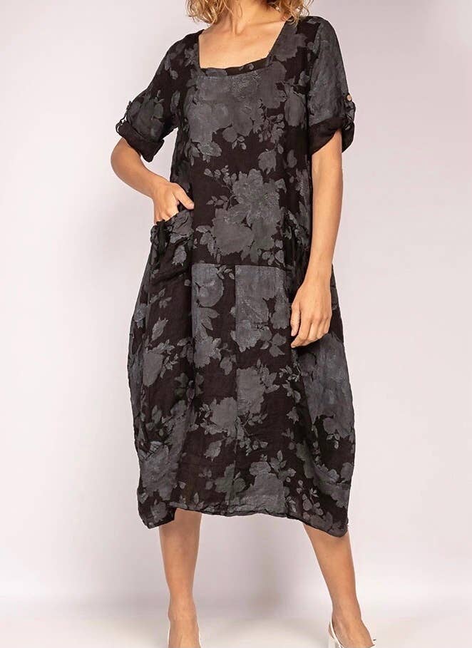 Leinenkleid mit floralem Muster, 100 % Leinen, Modell 67967 im Großhandel