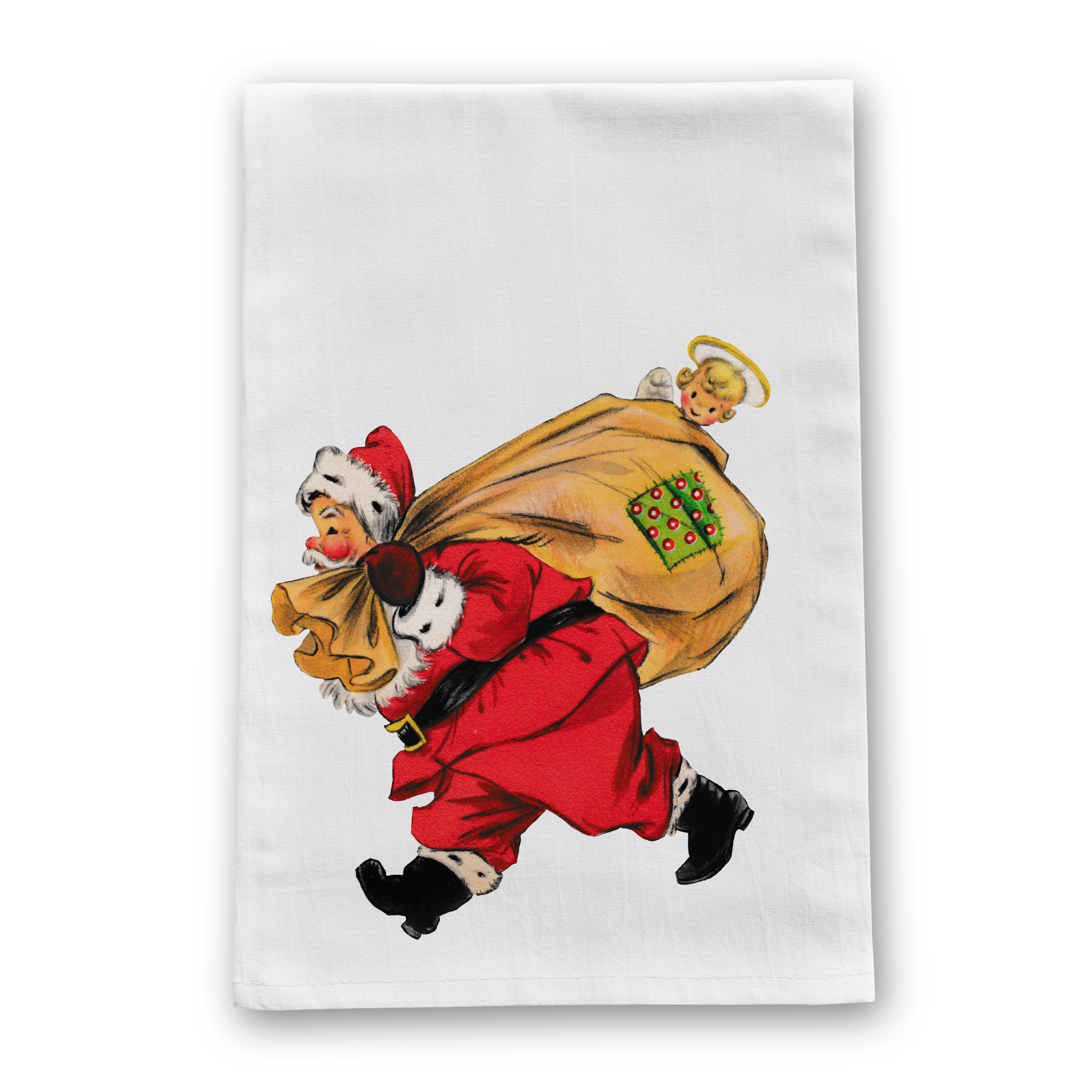 Weihnachtsmann mit Tasche Vintage Retro Weihnachtstücher
