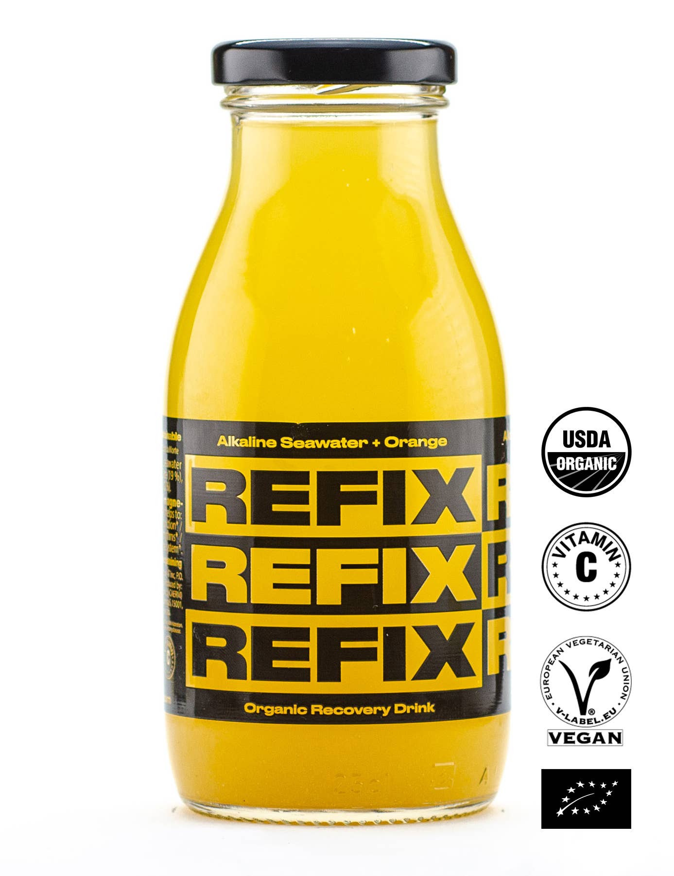 REFIX ist ein ökologisches Erholungsgetränk, hergestellt mit 20 % alkalischem Meerwasser (pH 8) aus dem Atlantischen Ozean. REFIX enthält 78 Meeresmineralstoffe, darunter Magnesium, Kalzium, Silizium, Kalium und weitere. Das Getränk ist 100 % natürlich, nachhaltig, ökologisch und vegan und wird in einer Glasflasche angeboten. REFIX Orange hat nur 48 Kalorien und ist eine natürliche Quelle von Vitamin C, das ein gesundes Immunsystem unterstützt. Es besitzt einen angenehmen süßen Geschmack dank biologischer Orangen aus Valencia.
