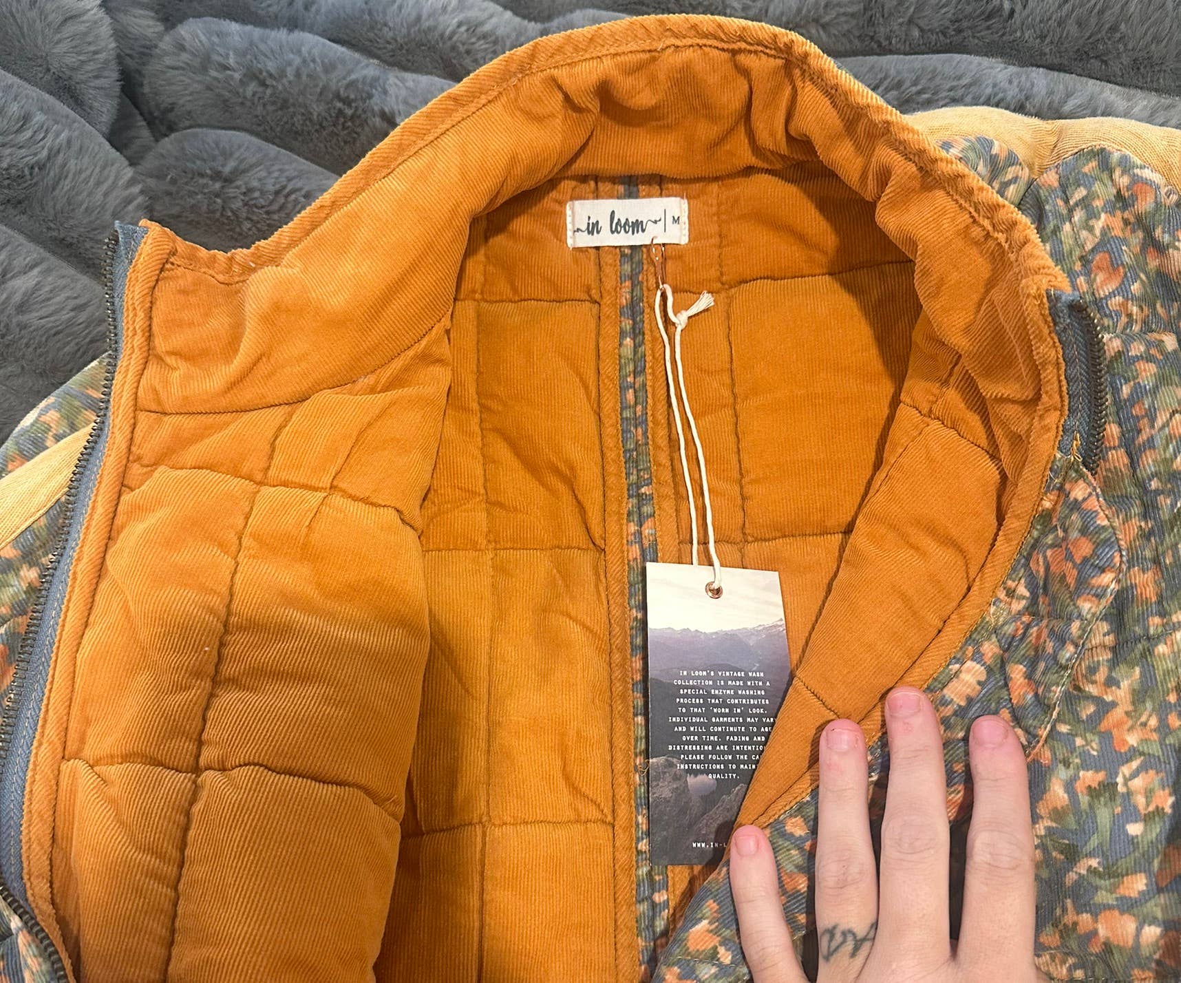 Steppjacke aus Cord mit Blumendruck