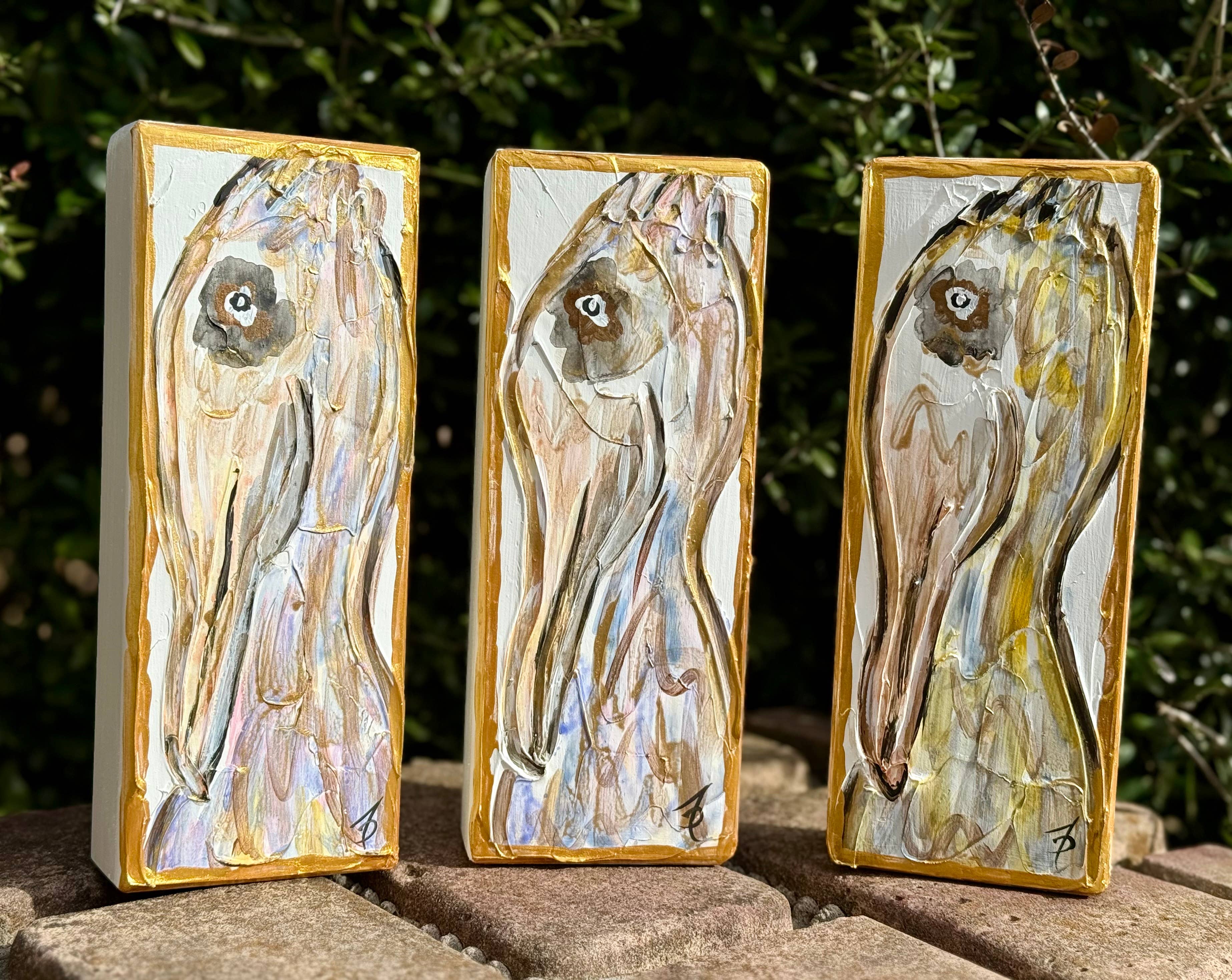 Dies ist ein strukturiertes Leinwandgemälde einer blauen Hortensie. Für das Gemälde werden mehrere Blautöne verwendet und die Hortensie ist in metallischem Gold hervorgehoben. Der Texturierungsprozess verleiht dem Gemälde Tiefe. Die Leinwand ist 4 Zoll x 12 Zoll groß.