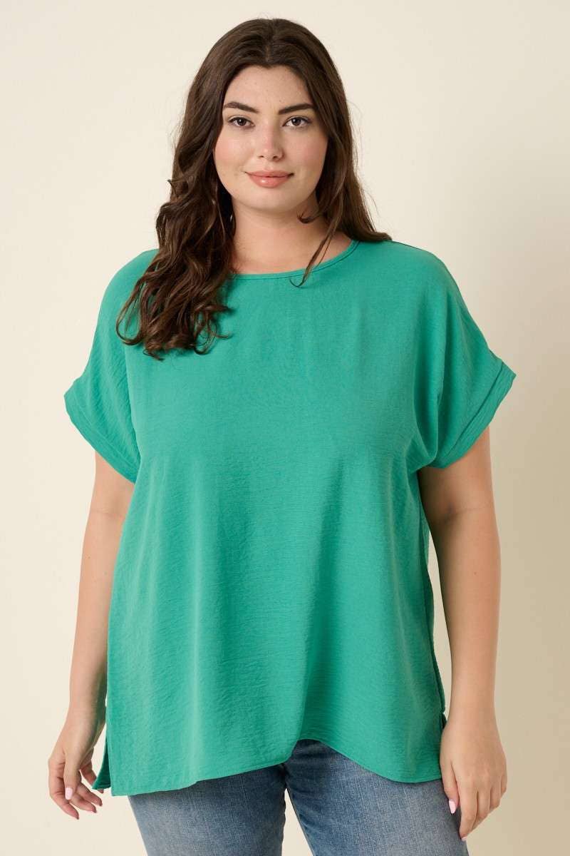 - HERSTELLUNG VON BAMBUS - RUNDHALSAUSSCHNITT - LOCKERE PASSFORM - KURZÄRMLIG - GESCHWUNGENER SAUM GESTYLT MIT: C70317 (KURZE HOSE), H90238 (PINKER ROCK), H70461 (SCHLAGHOSE)
