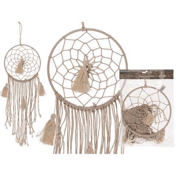 Ein farbenfrohes Statement für Ihr Zuhause, das gute Träume fördert? Indigene Kulturen haben traditionell Traumfänger verwendet, um Albträume zu stoppen. Traumfänger wurden über dem Schlafbereich aufgehängt, wo das Morgenlicht darauf treffen konnte. Der Legende nach fängt das Netz in der Mitte des Reifens die schlechten Träume und Geister ein, während es gute Träume durchlässt, die an den Federn hinuntergleiten können. Größe: Traumfänger hängt insgesamt 15 cm Wildleder in Tan oder Braun, je nach Verfügbarkeit.