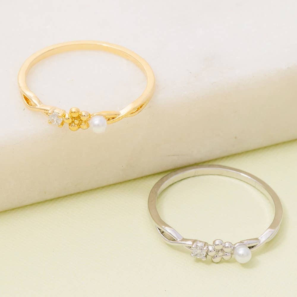 Dieser Ring präsentiert einen atemberaubenden, mit Gold überzogenen Zirkonia und ein Herz im offenen Bandstil aus Perlmutt. Erleben Sie die perfekte Verschmelzung von Stil und Funktionalität, da dieser Ring mühelos Ihren Lebensstil ergänzt. GRÖSSE 6,5, VERSTELLBAR 90% MESSING, 2% ZIRKONIA, 8% PERLMUTT