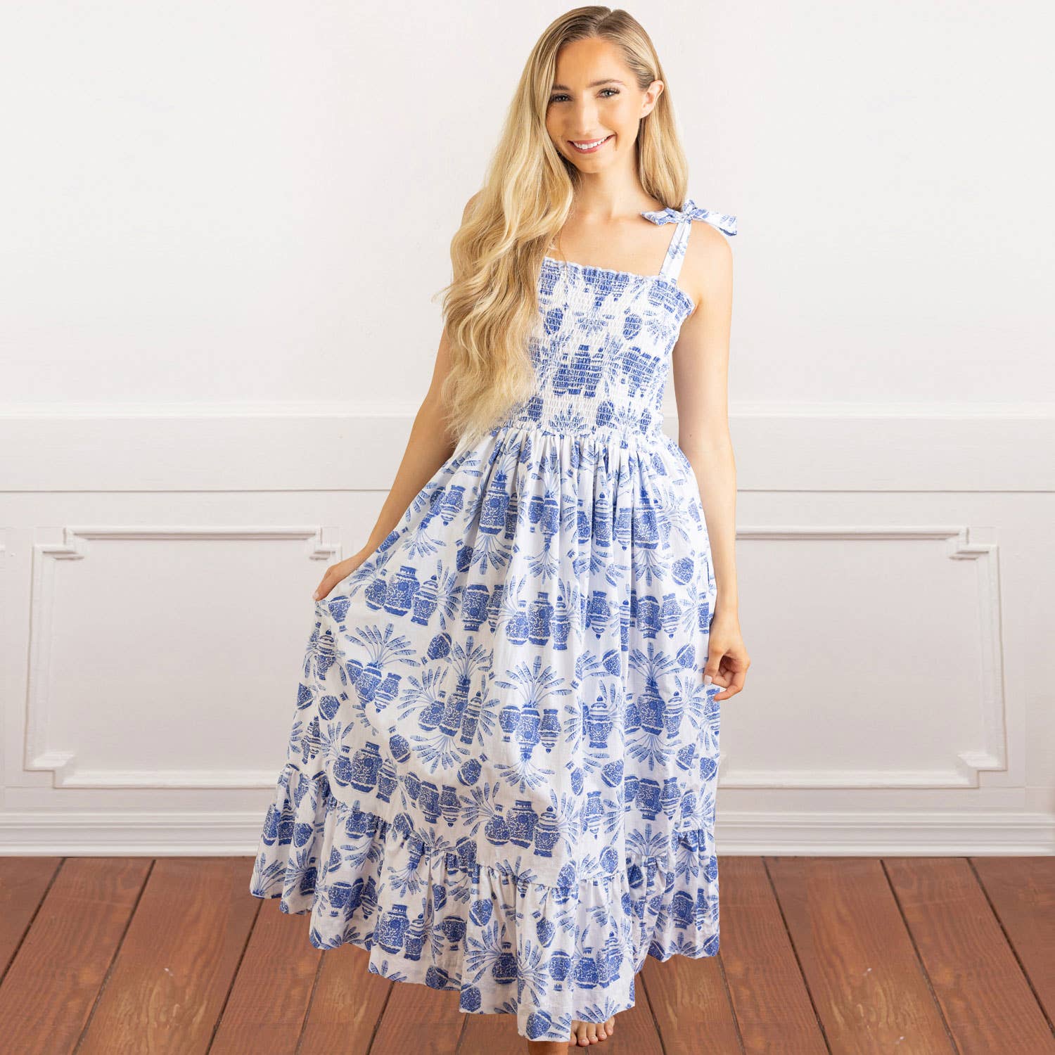 Botanisches Kleid mit gesmokten Flatterärmeln im Großhandel