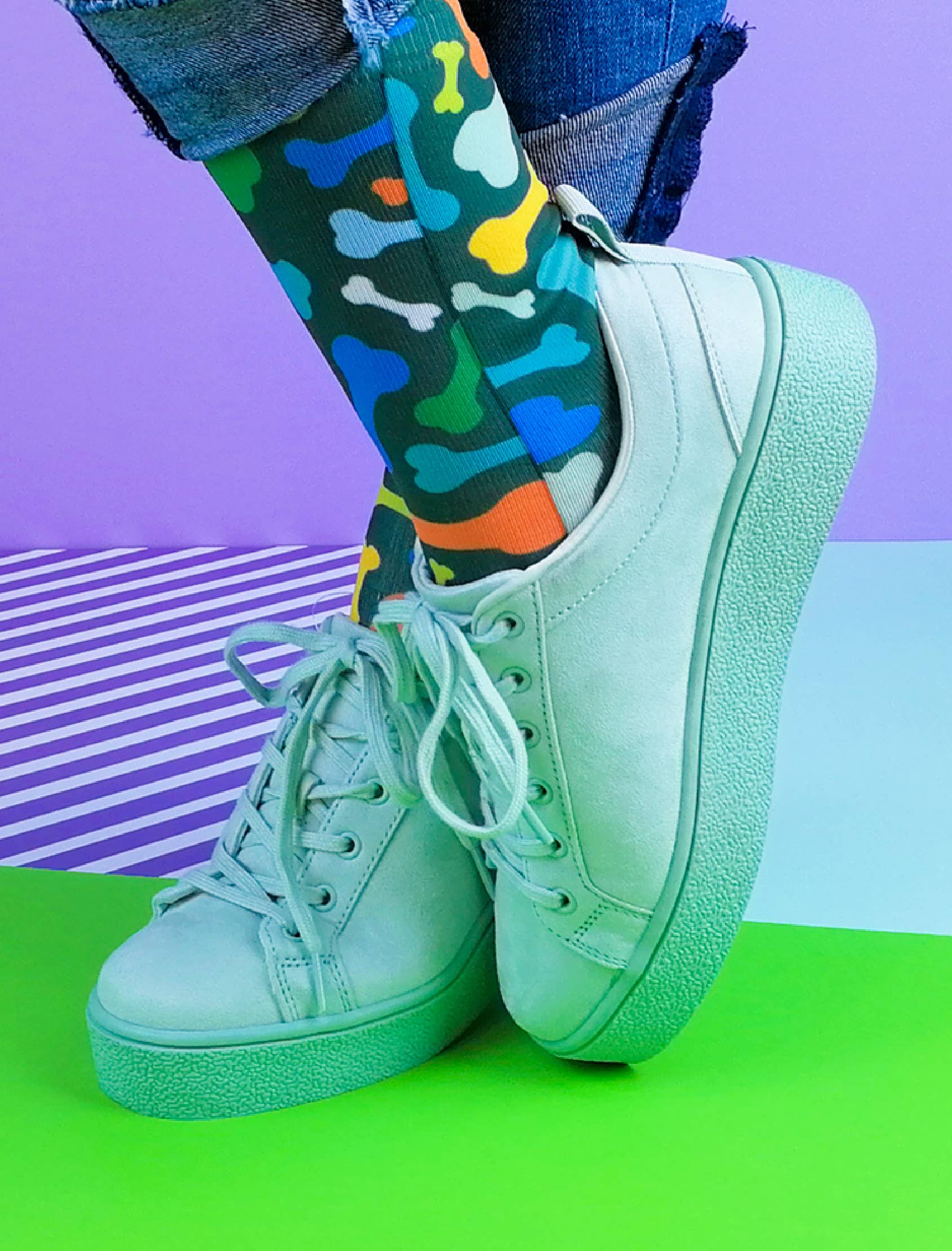 Ich bin sehr enttäuscht von den Socken. Sie sind im Grunde billige bedruckte Schlauchsocken, die KEINE Ferse haben und sehr schlecht passen. Sie haben keine Form und rutschen beim Tragen am Bein hoch, da sie nicht so gestrickt sind, dass sie sich der Kontur von Fuß und Bein anpassen. Ich habe sie diesbezüglich kontaktiert, aber sie haben mich ignoriert. Außerdem haben sie den falschen Stil geliefert. Schöne Drucke, aber sehr SCHLECHTE Qualität der Socken.