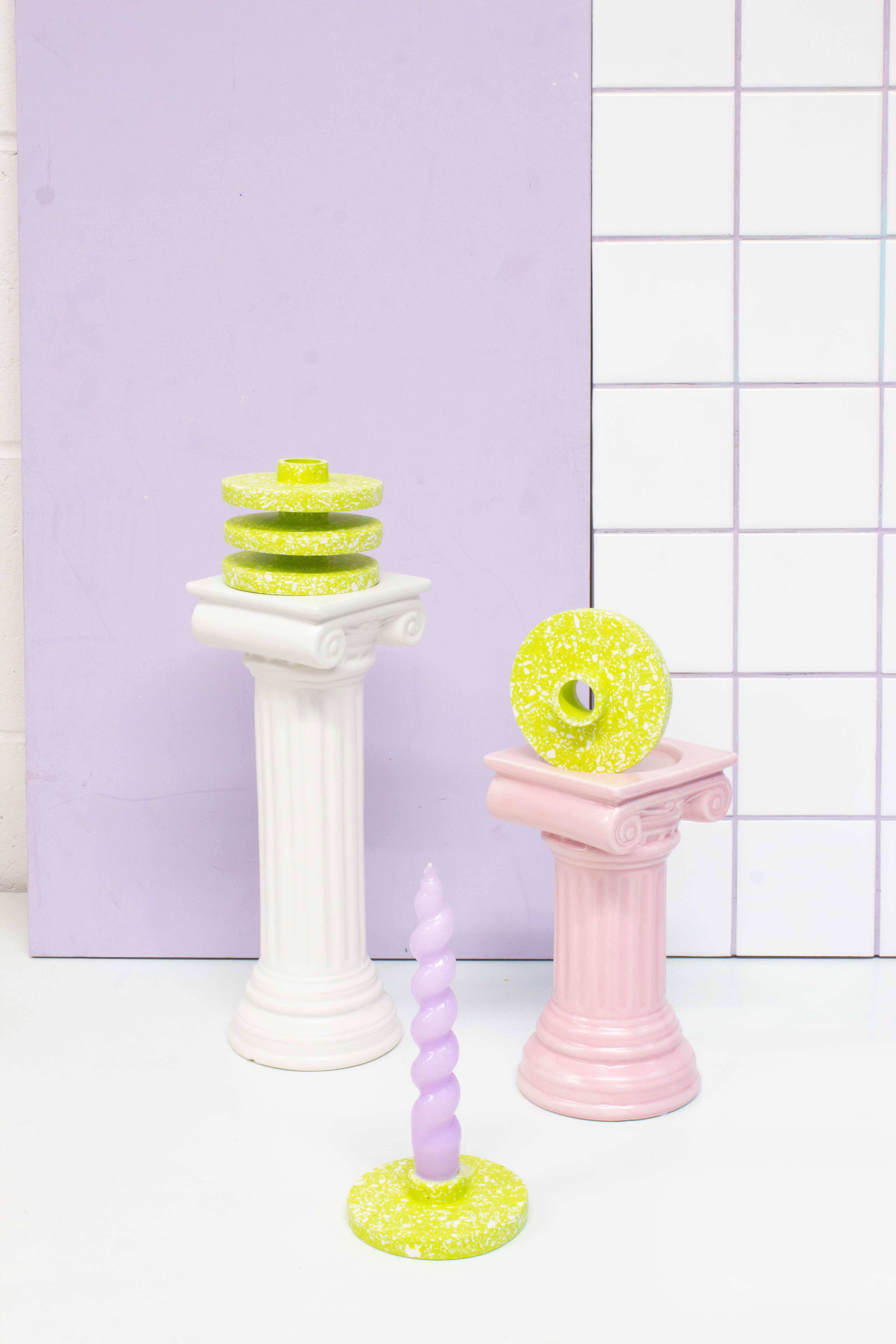 Kerzenhalter/Vermehrungsscheibe aus Terrazzo in Flieder und Weiß