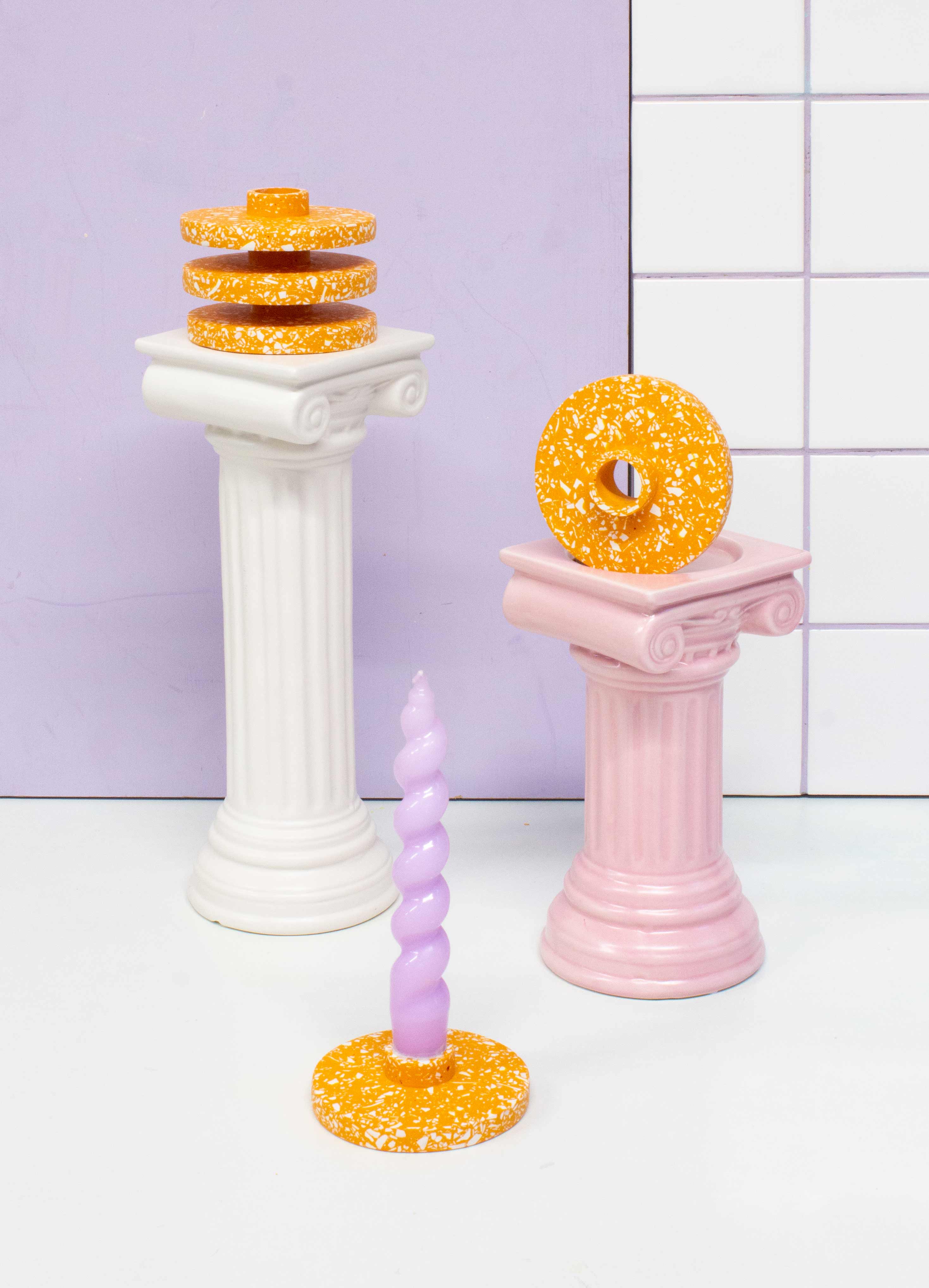 Kerzenhalter/Vermehrungsscheibe aus Terrazzo in Flieder und Weiß im Großhandel