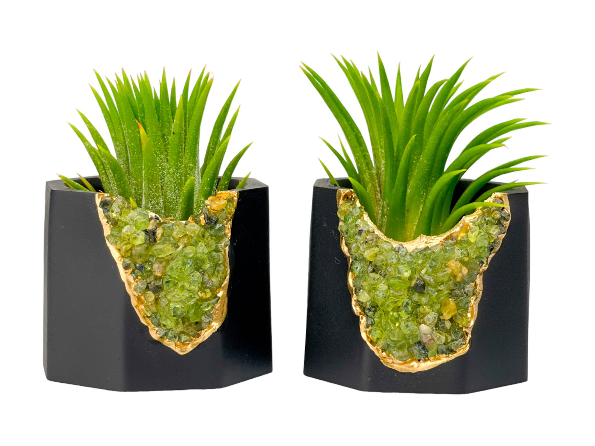 Natürliche Kristalle und Beton werden zusammen geformt, um ein einzigartiges und einzigartiges Einweihungsgeschenk, ein Wohnakzent und ein Zuhause für Ihre kleinen Pflanzen zu schaffen. Unsere wunderschönen Kristall-Pflanzgefäße können auf vielfältige Weise verwendet werden, vom Luftpflanzenhalter, Sukkulententopf, Kerzenhalter, Schmucktopf bis hin zu niedlichen Bechern für kleine Gegenstände. Heilende Eigenschaften: Es wird angenommen, dass Fluorit negative Energie und Stress absorbieren und neutralisieren kann. Fluorit ist eine hervorragende Lernhilfe, steigert unsere Konzentrationsfähigkeit und unser Selbstvertrauen und hilft uns bei der Entscheidungsfindung. Es fördert Positivität, gleicht die Energien aus und verbessert das Gleichgewicht und die Koordination, sowohl physisch als auch psychisch. Größe 2,2 Zoll (B) x 1,8 Zoll (H) Eigenschaften • kleine getrommelte Fluoritsplitter • Betonfarbe - schwarz • Drainageloch handgemacht da es durch menschliche Beschattung von Beton hergestellt wird, kann die Größe der Kristalle leicht variieren. Sie erhalten ein einzigartiges Pflanzgefäß, das nicht exakt dem auf den Fotos entspricht.