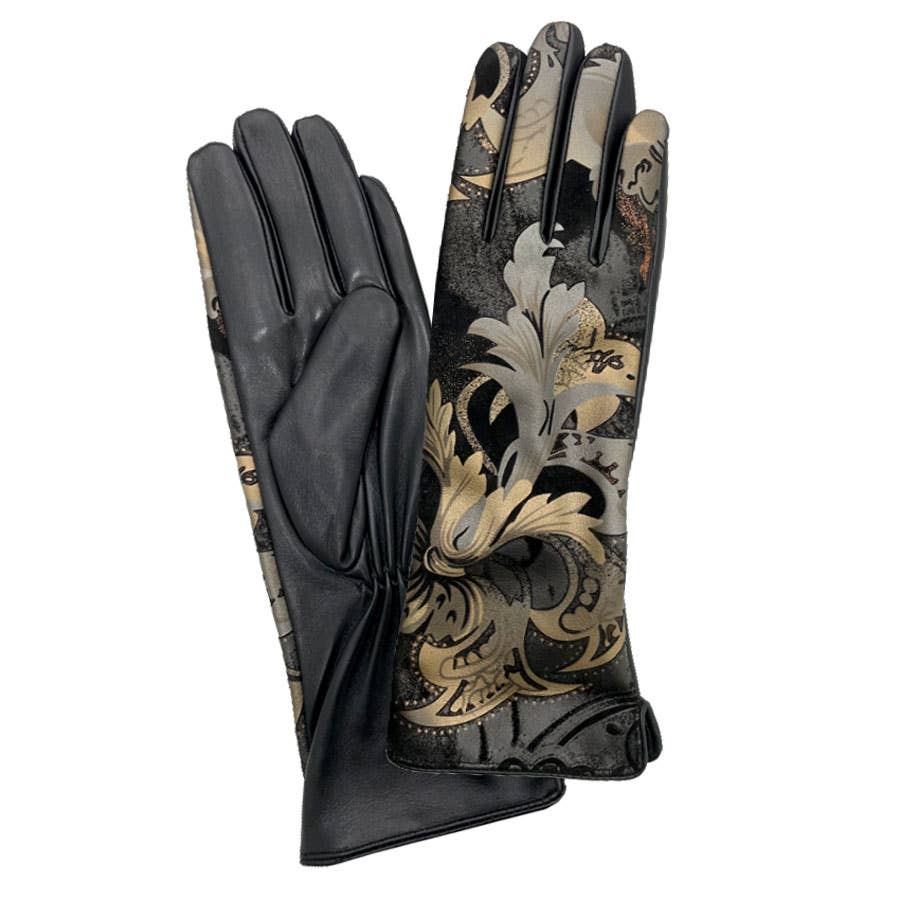 Camellia bedruckte Lederhandschuhe O/S MED im Großhandel