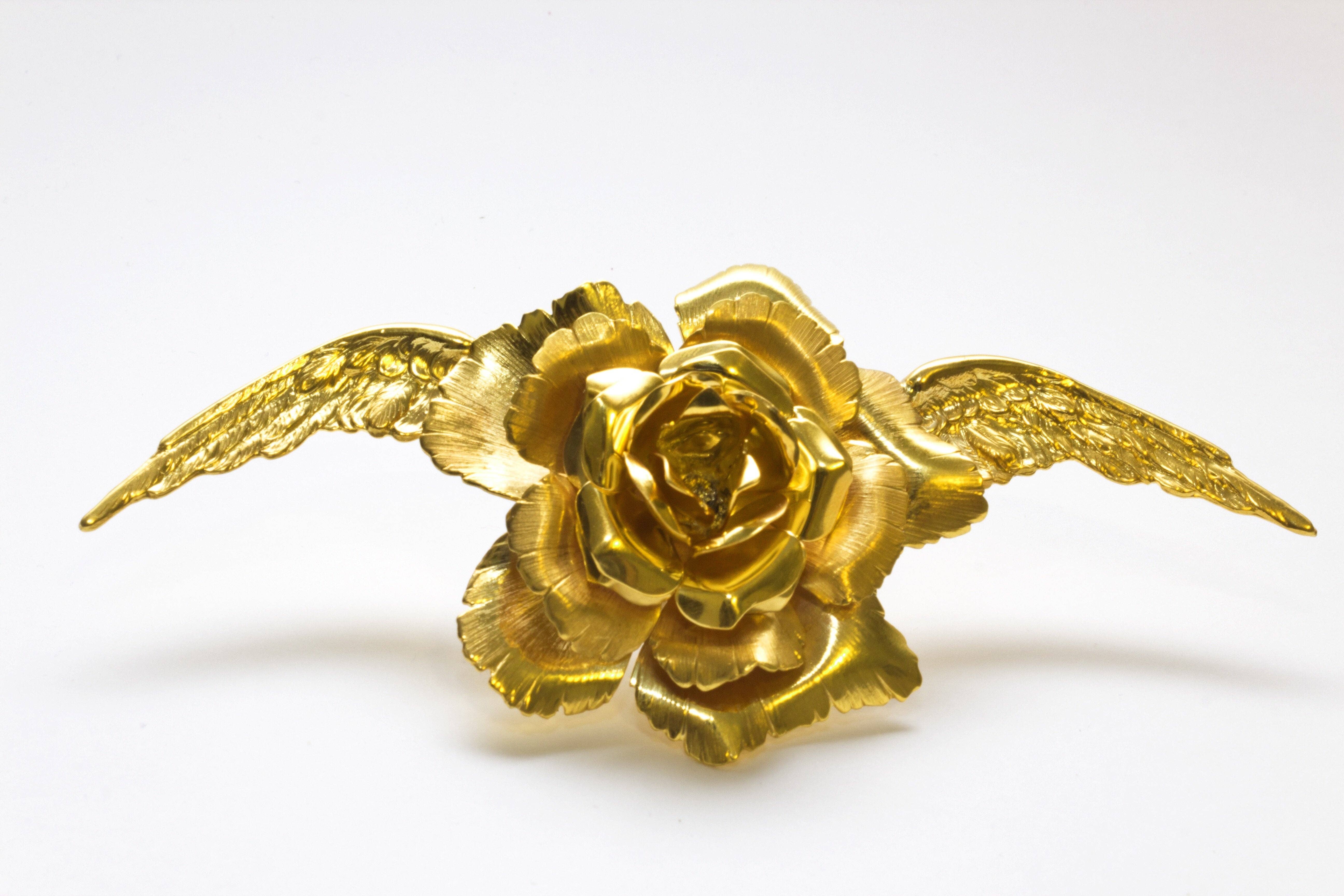 Stellen Sie sich einen faszinierenden Cocktailring vor, der aus glänzendem Metall geformt ist und sorgfältig gestaltet wurde, um den zeitlosen Reiz einer Rose nachzubilden. Die Blütenblätter, aus kunstvoll geformtem Metall gefertigt, biegen sich sanft und überlappen sich, um die blühende Silhouette einer strahlenden Rose zu bilden. Die Metallarbeit fängt das Wesen der zarten Textur und der anmutigen Krümmung jedes Blütenblatts ein und verkörpert die natürliche Schönheit einer blühenden Blume. Dieses Meisterwerk aus Metall strahlt Eleganz und Raffinesse aus und setzt ein mutiges, aber dennoch raffiniertes Statement an der Hand des Trägers, ein Zeugnis für Kunstfertigkeit und zeitloses Design. Sein Design strahlt Eleganz und Weiblichkeit aus und fängt das Wesen einer blühenden Rose ein, die in der Zeit eingefroren ist, ein bezauberndes Schmuckstück, das mit seinen kunstvollen Details und seiner anmutigen Ausstrahlung zu fesseln bestimmt ist. Höhe: 1 3/4" Breite: 2" Länge: 2" Durchmesser: 5/8" Erhältlich in Gold, Silber, Roségold und schwarzer Ausführung Hergestellt in Amerika. Auf Messing plattiert.