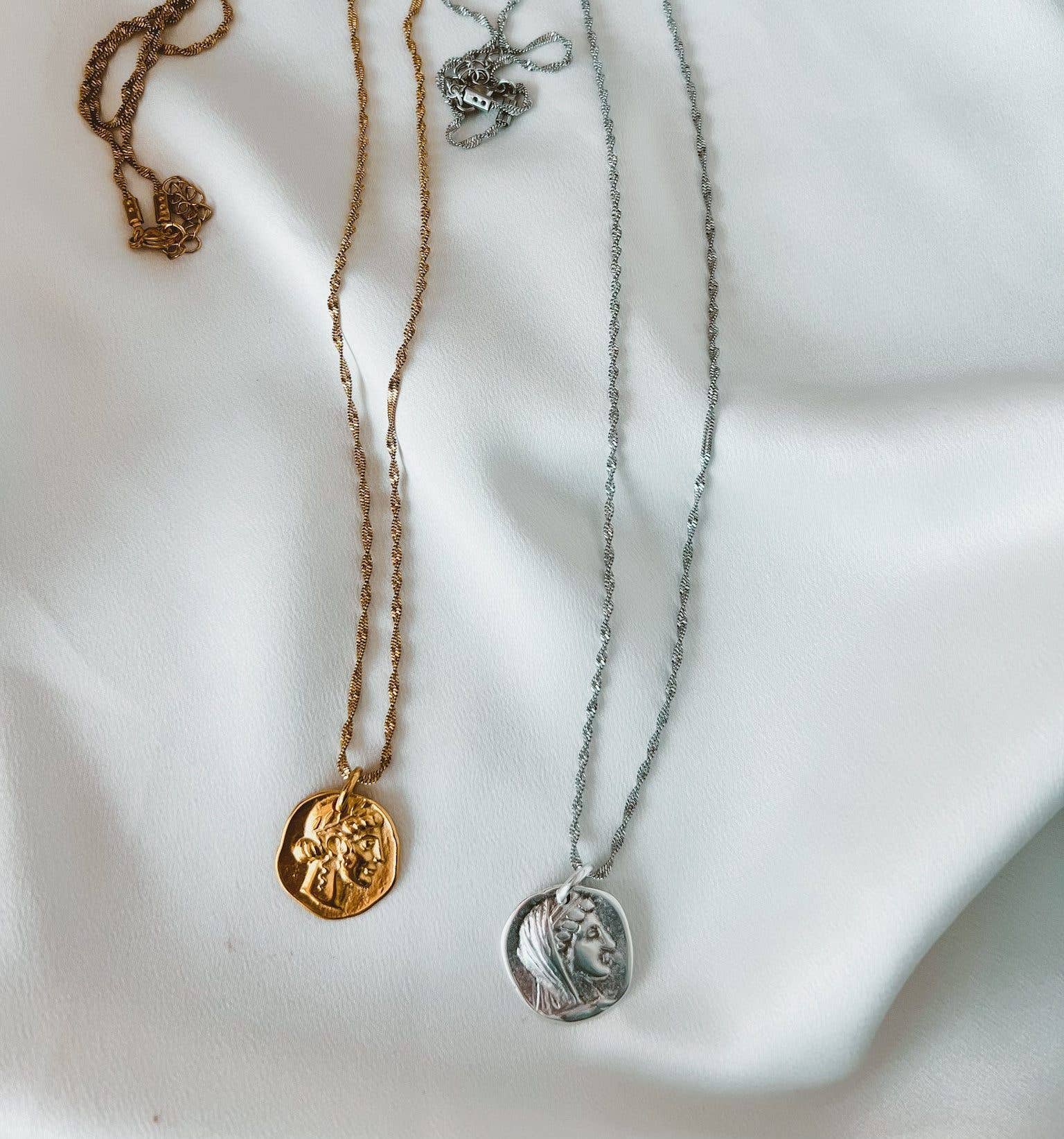 Ethnische Ketten-Halskette mit antiker Münze – Grobkettiges Statement