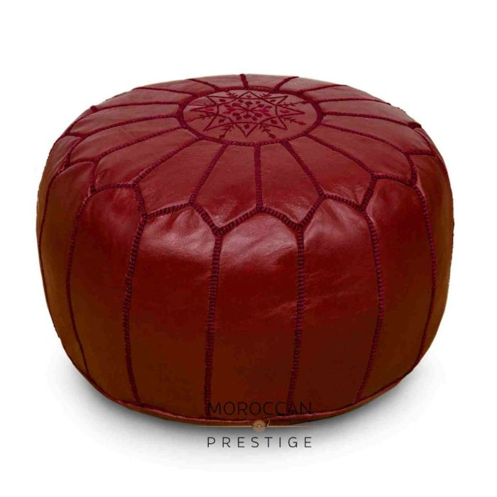 Unsere marokkanischen Hocker werden von erfahrenen Handwerkern in der antiken Stadt Marrakesch aus traditionell gegerbtem Leder hergestellt. Unsere Produkte sind einzeln handgefertigt, was zu leichten Abweichungen in Farbe und Stickerei kommen kann. Unsere Hocker sind mit sauberer zertifizierter recycelter Baumwolle gefüllt, die alle US-Standards erfüllt. Hocker können durch Abwischen mit einem weichen, trockenen Tuch, vorzugsweise Mikrofaser, gepflegt werden. Verschüttete Flüssigkeiten sofort auffophen. Flecken müssen möglicherweise professionell gereinigt werden. Material: Natürliches hellbraunes Leder. Größe: 50,8 cm Durchmesser x 35,6 cm hoch.