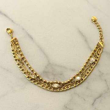 Eine Mischung aus 14k vergoldeten Ketten, das Journey-Armband ist ein zeitloses Schmuckstück, das sich leicht elegant oder leger tragen lässt. Dieses vielseitige 14k vergoldete Armband kann dank der anlaufgeschützten Kette Tag und Nacht getragen werden - zudem ist es schweißfest, wasserdicht und bereit, immer wieder getragen zu werden! Es bietet eine Vielzahl von Kettenstilen und Texturen. Details: * Material: 14k vergoldet * Standard-Armbandlänge ist 7". Wenn Sie sich über Ihre Größe unsicher sind, messen Sie bitte mit einem Faden und Lineal, bevor Sie bestellen. Ihr Kauf fördert existenzsichernde Arbeitsplätze, Innovation und Unternehmertum. Der gesamte Gewinn aus dem Verkauf dieses Armbands wird gespendet, um den Menschenhandel zu stoppen.