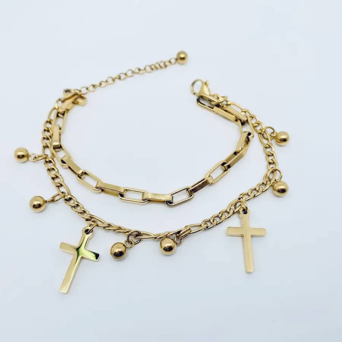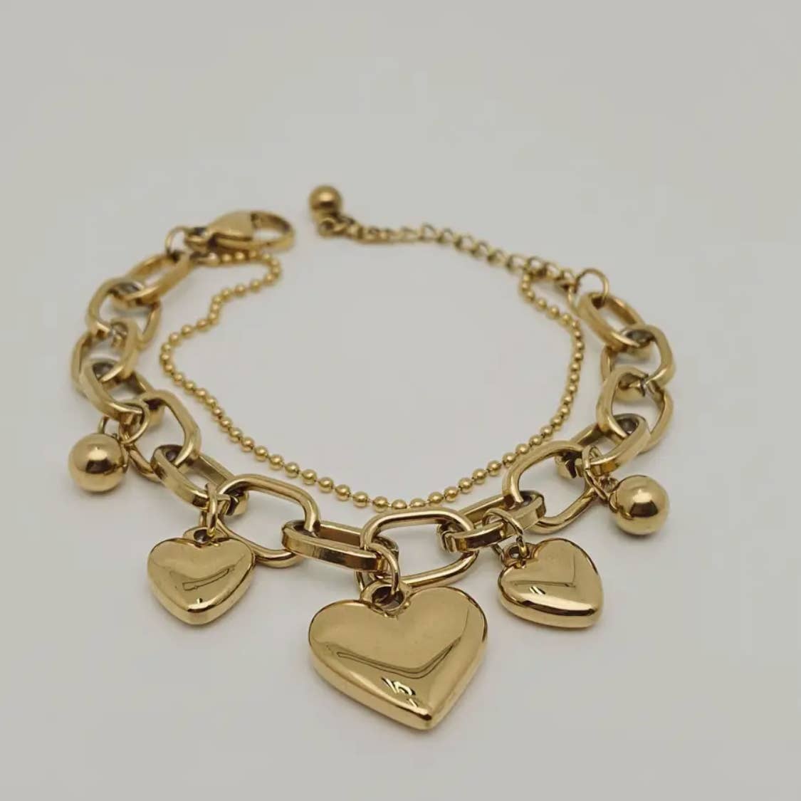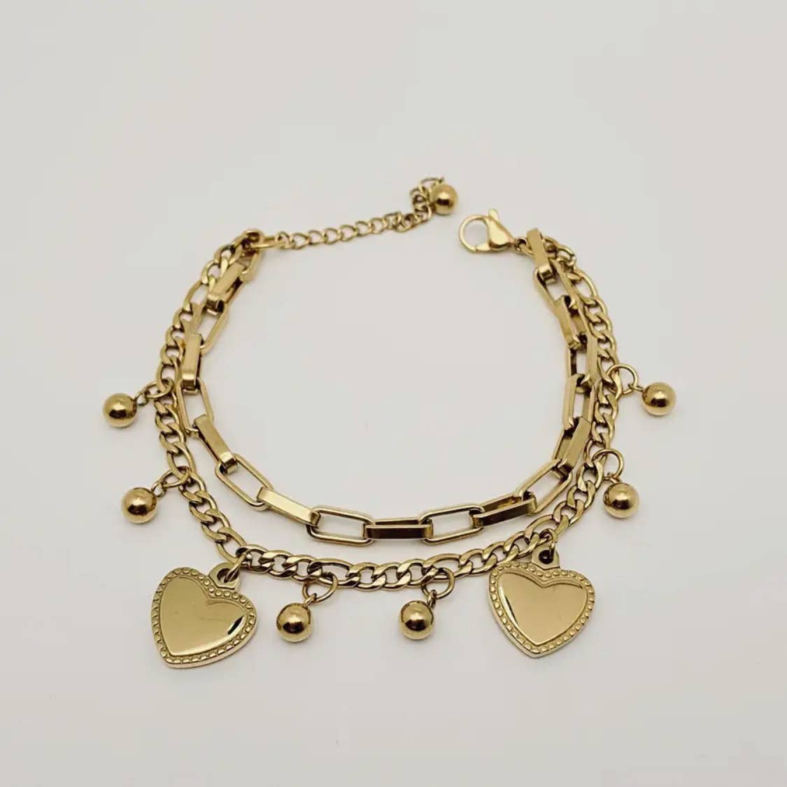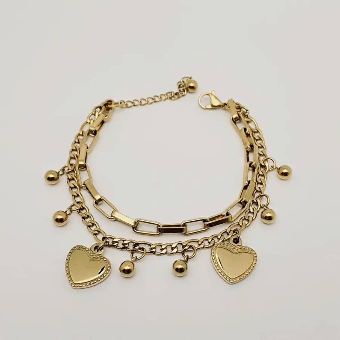 Star Heart Charm Doppelglied Armband, 18K vergoldet - Mio Queena im Großhandel