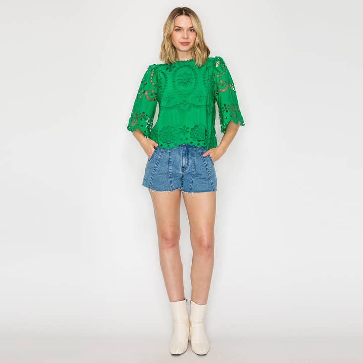 Rosa Gänseblümchen-Spitzentop mit Schleife - LWT1978 im Großhandel