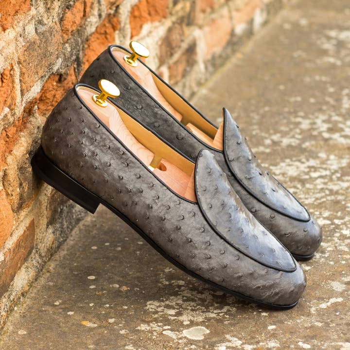 FUNKTIONEN * Modell: Belgian Slipper * Materialien: Black Box Calf, Schwarz lackiertes Kalb, Dunkelbrauner exotischer Alligator * Futter: Hellbraunes Kalbslederfutter * Sohle: Burgunderrote Slipper-Ledersohle * Letzte: Wellington * Oberflächenattribut: Standardausführung * Handgefertigte Produktionszeit: 4 Wochen Vorlaufzeit