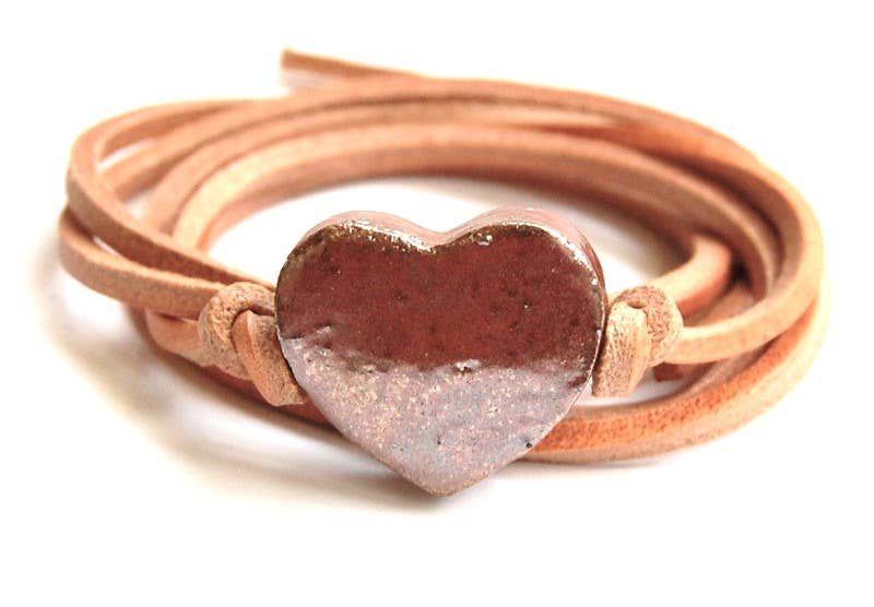 Spitzenarmband aus Naturleder mit roségoldenem Herz