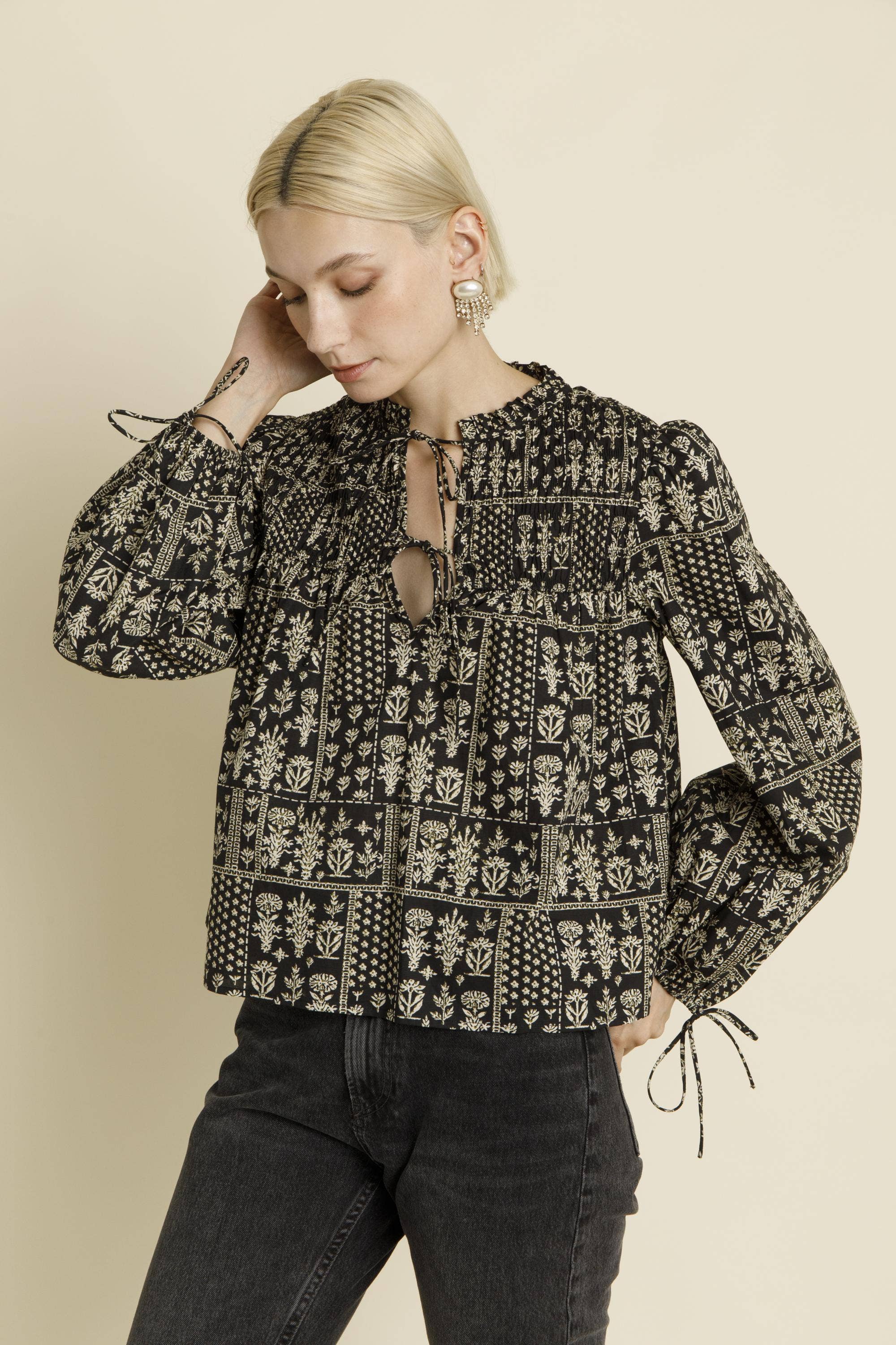-Herstellung: 100% Baumwolle -Smokiertes Oberteil und Ärmelabschlüsse -Reißverschluss auf der Rückseite -Seitennahttaschen Das Model ist 1,80 m groß und trägt Größe S