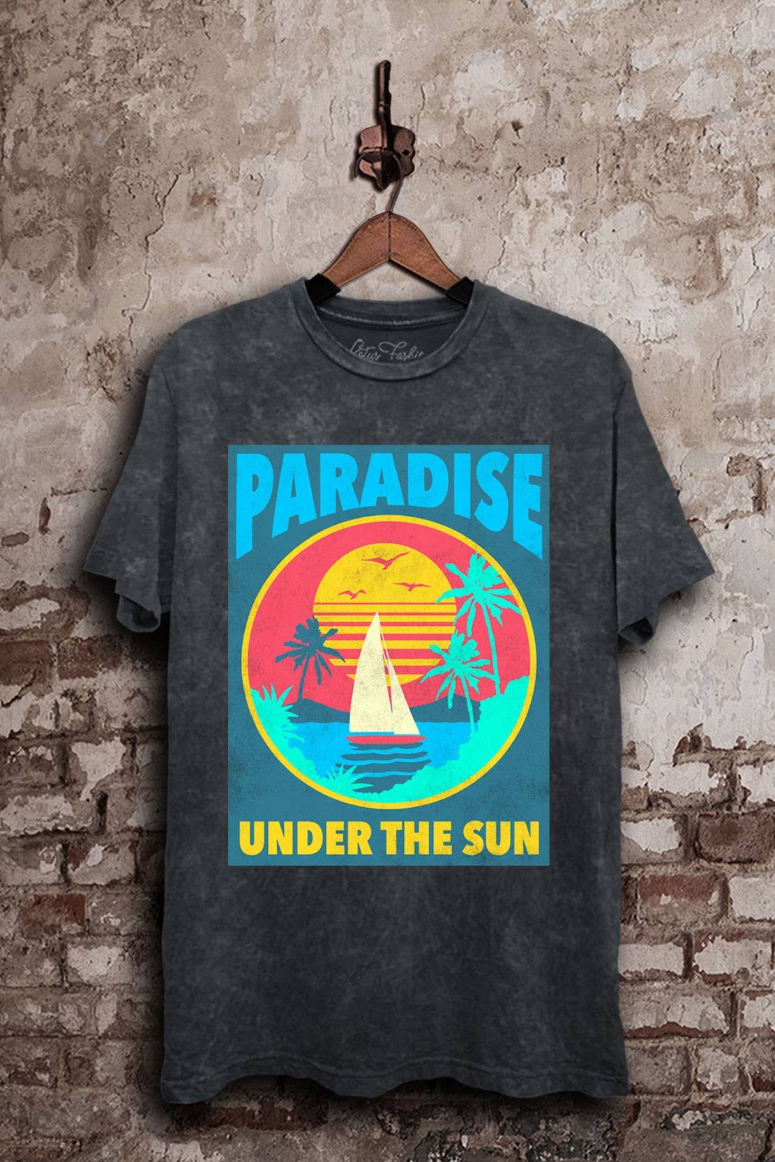 The Lotus Boyfriend Tee/Mineral Washed — Kurzärmliges Grafik-T-Shirt mit Rundhalsausschnitt, locker an den richtigen Stellen mit leicht abgesenkten Ärmeln. Hergestellt aus unserem weichen, mineralgewaschenen Baumwollstoff aus 100% Baumwolle. Die Grafiken und Hauptetiketten werden im hauseigenen Siebdruckverfahren am Hauptsitz der Lotus Fashions-Druckerei in Los Angeles gedruckt.