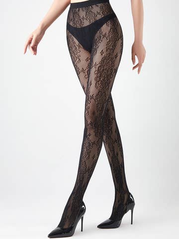 TEMPTATION schwarze Netzstrumpfhose mit Leopardenmuster