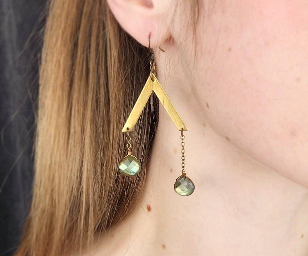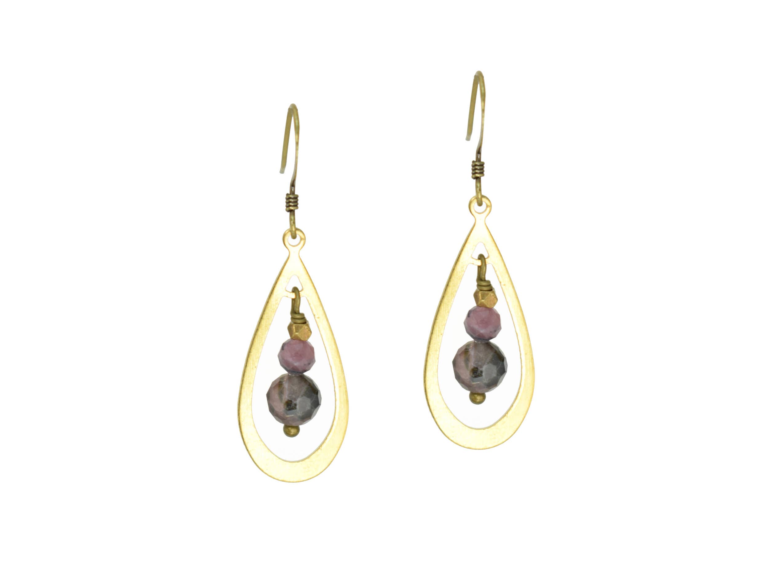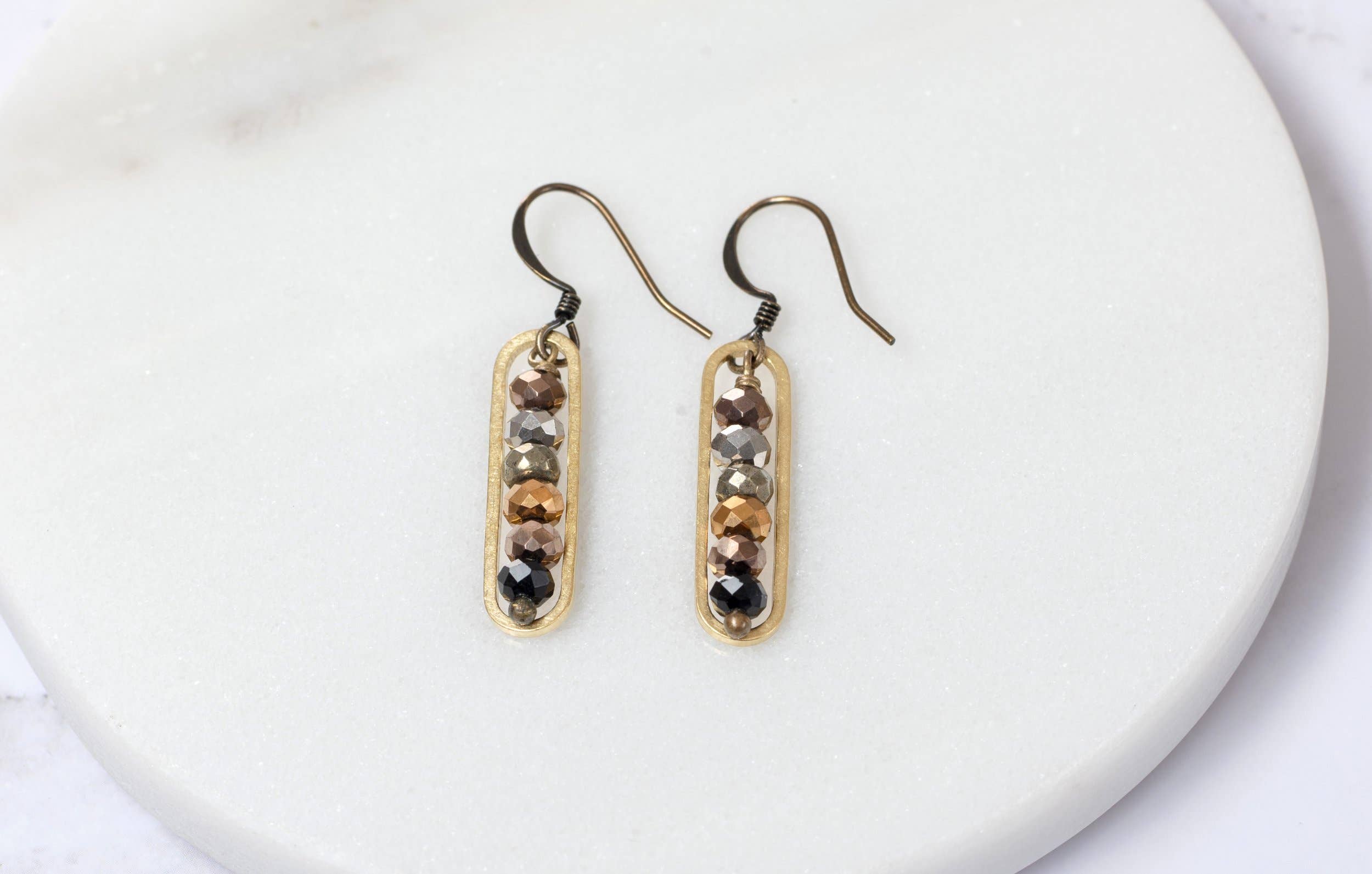 Schwarzer Onyx mit grauen und weißen Achat-D-Ohrringen. 6 mm schwarze Onyx- und Achatsteine. Elemente aus rohem Messing. Minimalistisches und einfaches Design, die perfekte Ergänzung für Ihre Edgy Petal Schmuckpräsentation. Hergestellt in den USA.