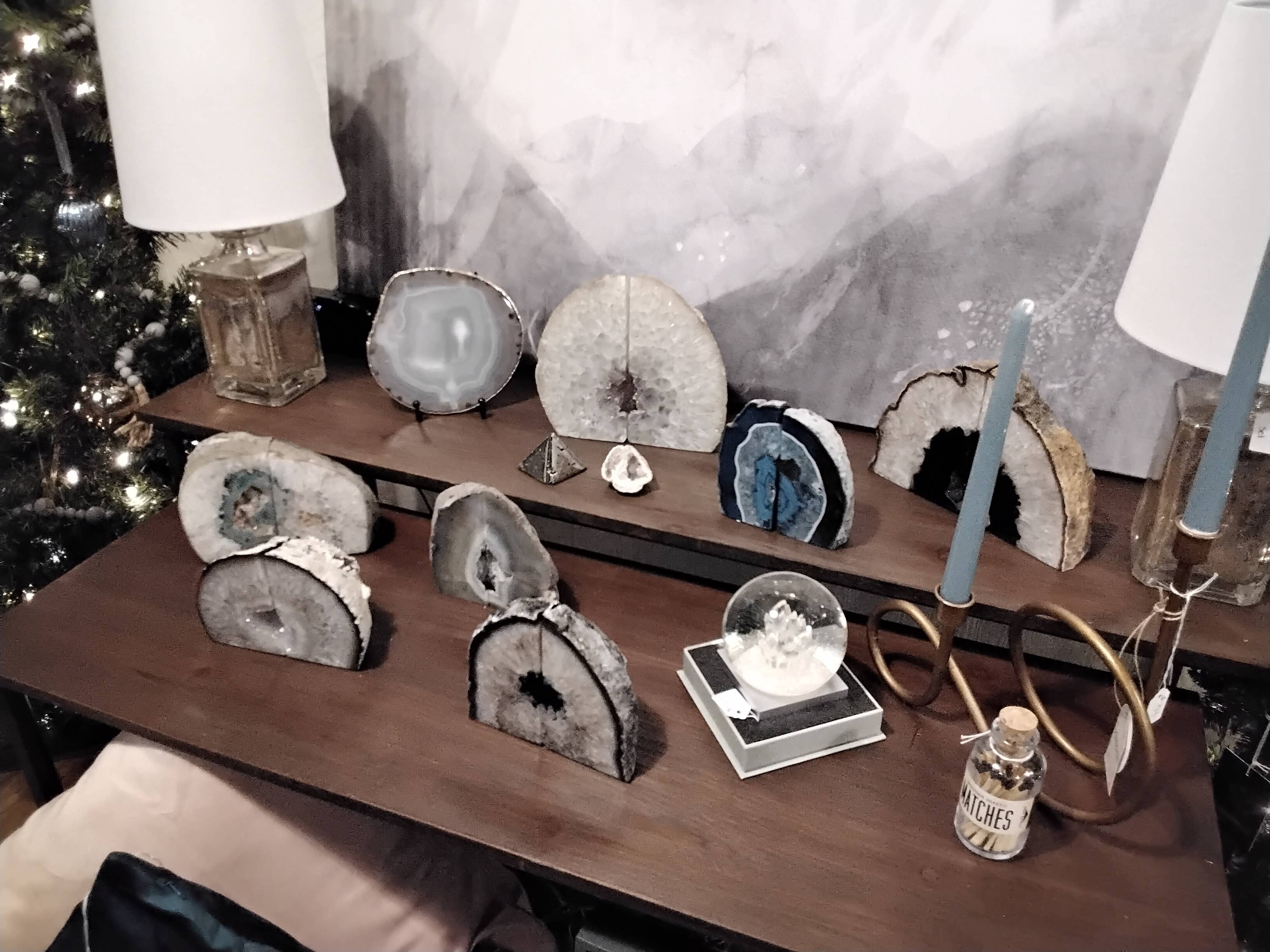 Alles kam wunderschön an. Dies ist meine zweite Bestellung. Die Achat-Buchstützen verkaufen sich gut in meinem Laden.