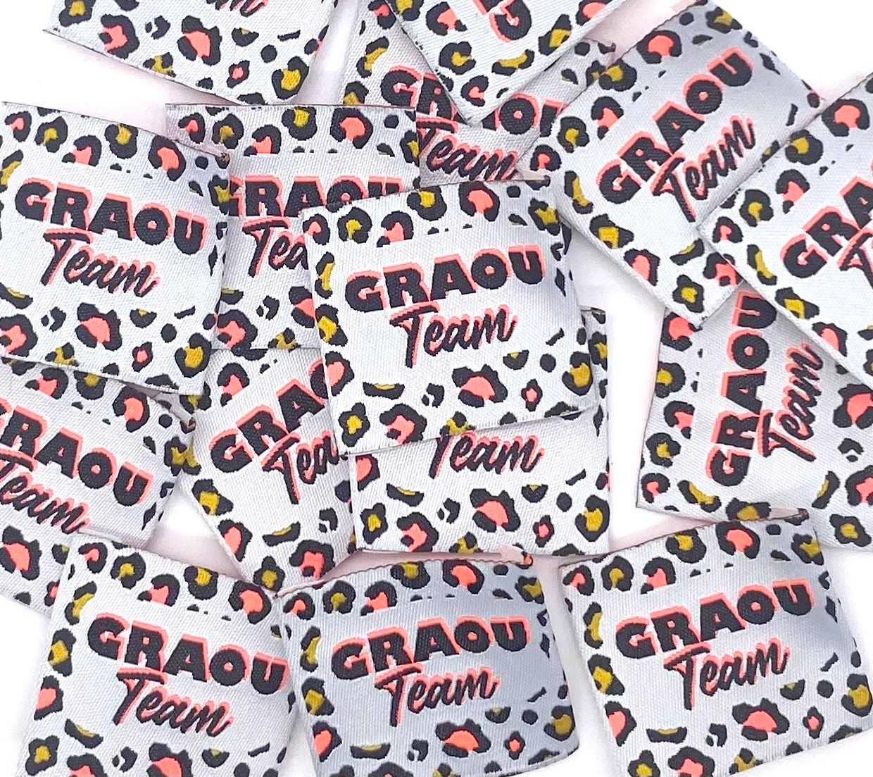 Gewebte Etiketten mit der Aufschrift "HO FUCK" zum Aufnähen auf Kleidung. Sie fransen nicht aus und verleihen den Kreationen den letzten Schliff oder personalisieren ein Kleidungsstück. Sie können auch einen Riss oder Fleck verbergen! ABMESSUNGEN: 38 x 35 mm mit 2 umgeschlagenen Kanten von 6 mm