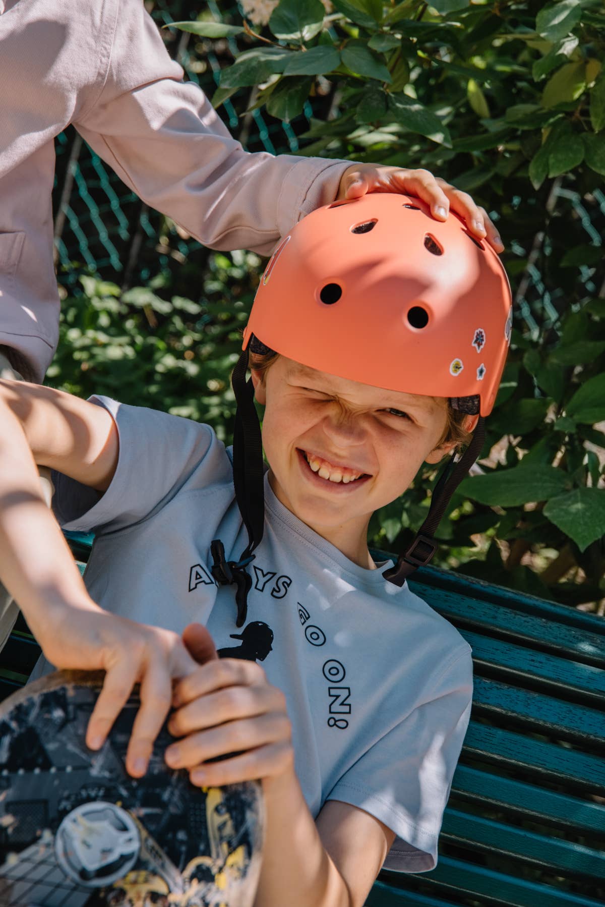 Unser Helm wird in Portugal mit einer exklusiven, matten Farbe hergestellt. Wir laden Sie ein, es mit einem Blatt Aufkleber zu personalisieren, das mit dem Helm angeboten wird und Universen für Jung und Alt zusammenbringt.
