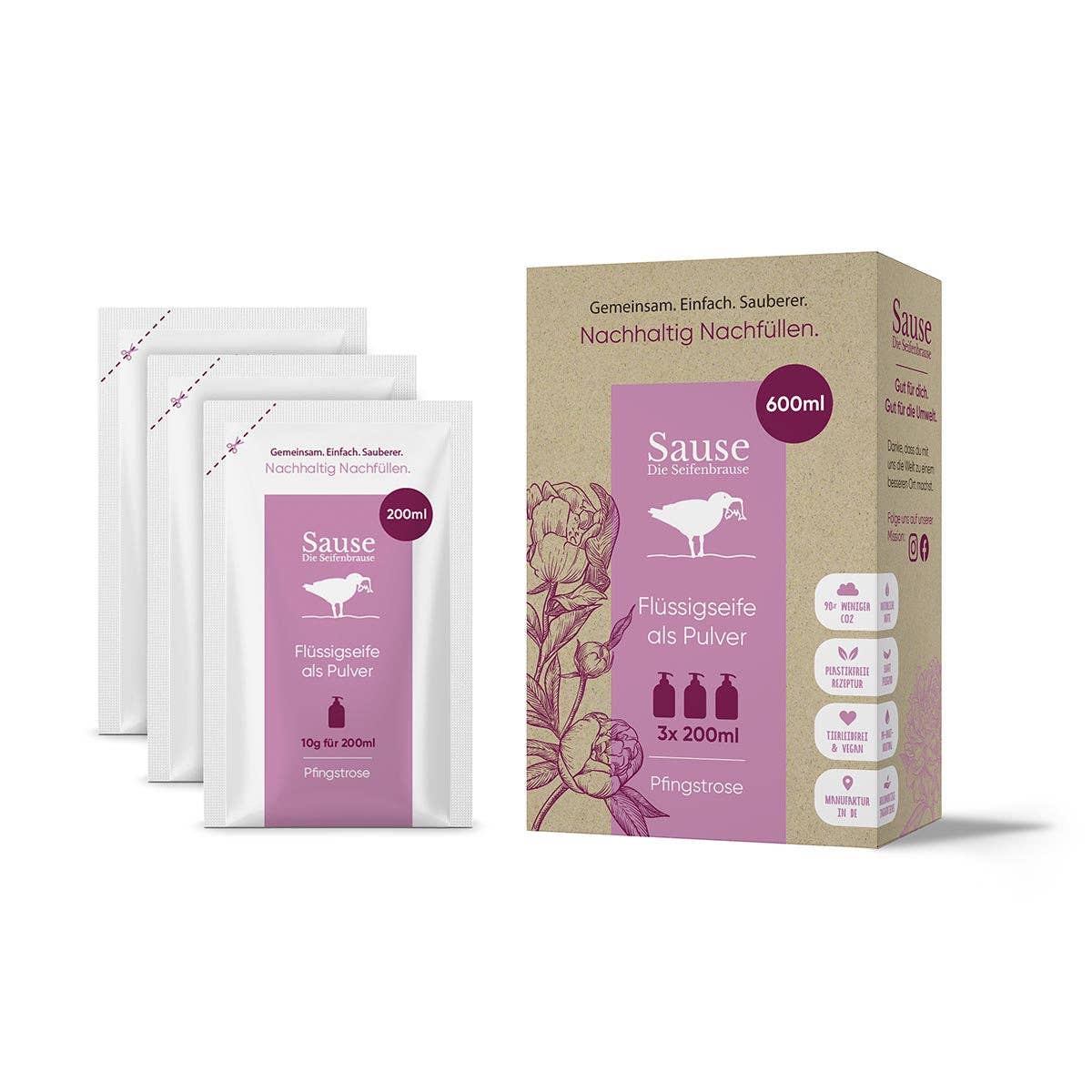 Das ist drin 3 x Sachets für je 200 ml Flüssigseife Besonders pflegend Mit Aloe Vera Extrakt und pH-Hautneutral So retten wir gemeinsam die Welt Nachhaltige Flüssigseife zum Nachfüllen in Pulverform. So wird aus deinem Seifenspender am Waschbecken ein täglicher Weltretter. Denn du sparst über 90% CO2 beim Transport, nutzt nur sorgfältig ausgesucht Inhaltsstoffe und kannst die Verpackung im Altpapier entsorgen. Der Duft Unsere fruchtig spritzige Sorte aus Orange und Mandarine wirkt wunderbar erfrischend und holt Dir den Sommer direkt ins Badezimmer! Die aus Zitrusfrüchten gewonnenen Duftöle aus rein natürlichen Inhaltsstoffen sorgen auch im stressigen Alltag für die innere Ruhe und pflegen nicht nur Deine Hände sondern auch Deine Seele!