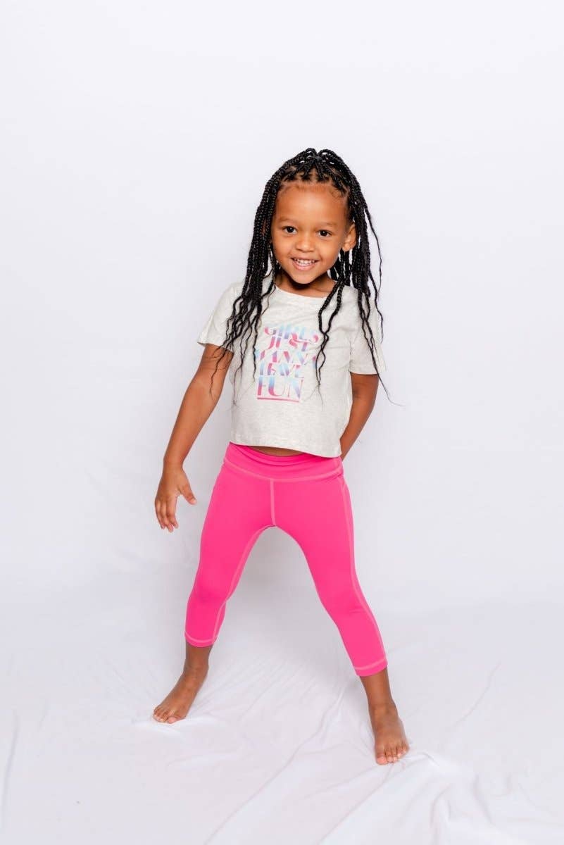 Einer unserer Bestseller! Als Mutter von vier Kindern hatte ich es satt, Geld für Sportkleidung auszugeben, die auseinanderfiel und nie wirklich gut passte. Deshalb habe ich mir Zeit genommen, um Stoffe zu finden, die sich lohnen und trotzdem erschwinglich sind. Diese wurden gemacht, um aktiv zu sein und Spaß zu haben! Das Shirt fühlt sich weich und luxuriös an. Der Tupfenprint auf den Activewear-Leggings ist ein Favorit der kleinen Kundinnen! Diese Activewear-Shirts für Kleinkinder bestehen aus einem unglaublich atmungsaktiven Stoff, der nicht nur bequem, sondern auch kühl, weich und ein bisschen dehnbar für Bewegung ist. Sie haben die verkürzte Form und die Länge reicht bis zum Bauchnabel. Das BESTE an diesen Shirts ist, dass sie nicht leicht knittern. So können sie in eine Schublade geworfen und schnell und einsatzbereit herausgezogen werden. Wir lieben auch die inspirierenden Zitate auf diesen Activewear-T-Shirts für Kleinkinder und kleine Mädchen.