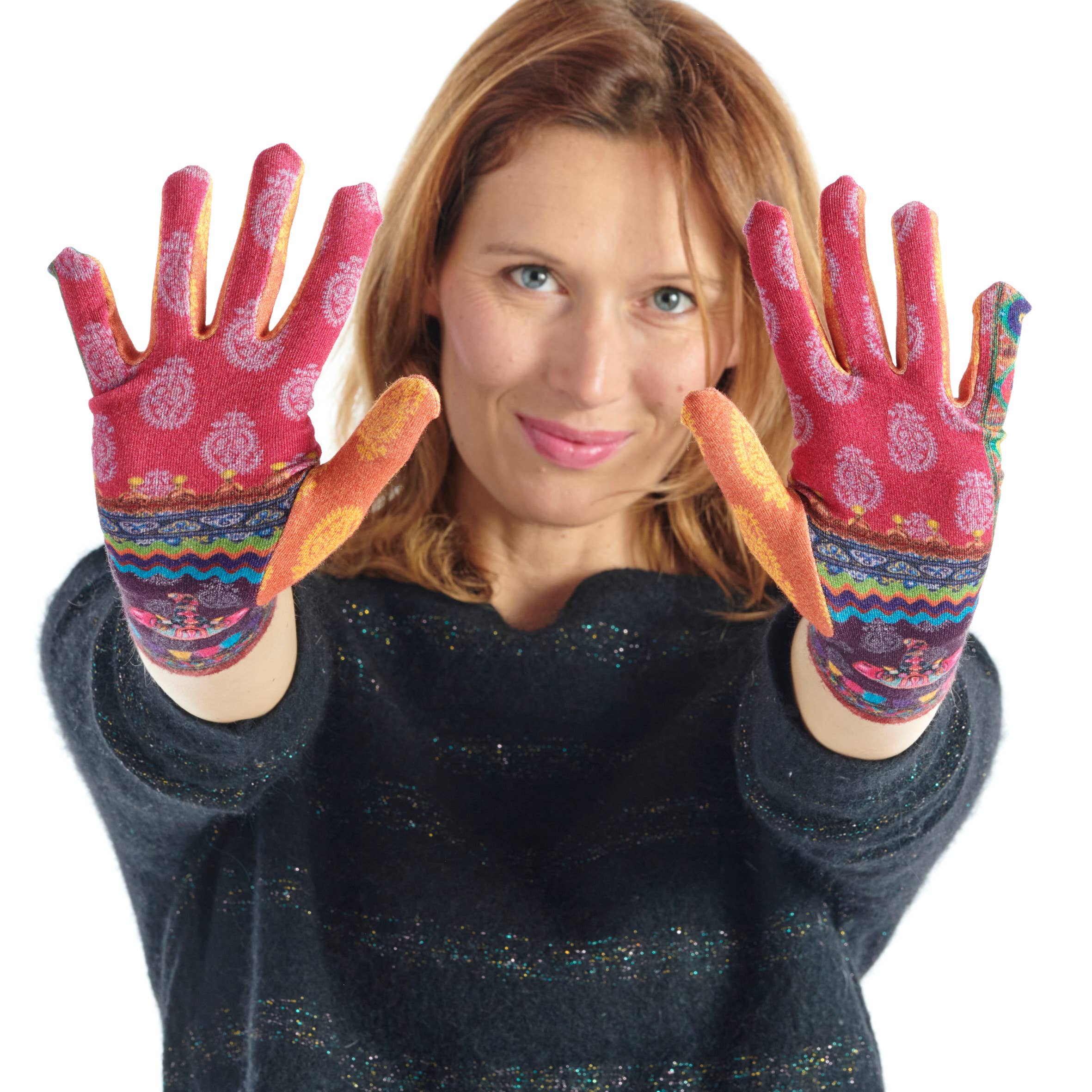 Bedruckte Handschuhe, hergestellt in Frankreich Einheitsgröße dank Lycra. In Frankreich hergestellte Handschuhe. Zusammensetzung: 78% Bambusviskose 20% Polyamid 2% Elastan. Maschinenwäsche bei 30 °C.