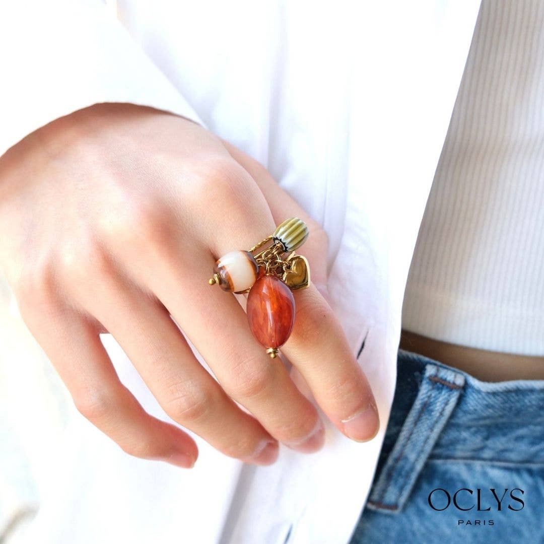 Mehrfarbiger Perlmutt-Blatt-Ring aus Edelstahl