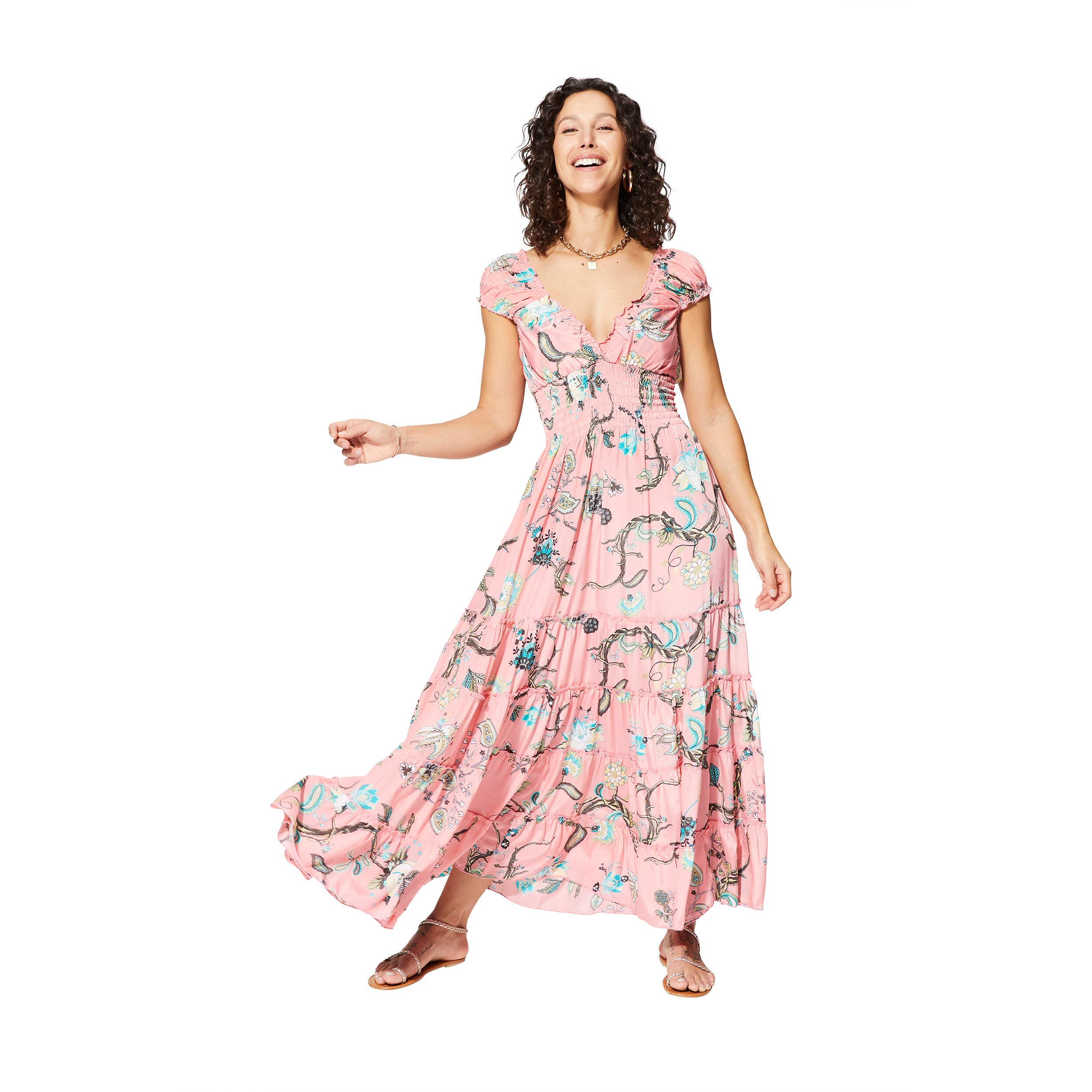 LANGES SOMMERKLEID MIT KURZEN ÄRMELN MCMAXI0652B