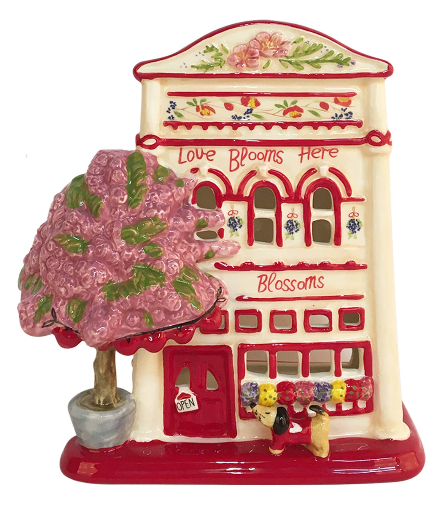 Mit akribischer Liebe zum Detail gefertigt, spiegelt es unser zwei Jahrzehnte währendes Erbe im Design handgefertigter, handbemalter Keramiken wider. Unsere Produkte sind weltweit anerkannt und gesammelt, und dieses Stück, wie unsere Kerzenhäuser, Teekannen und Keksdosen, ist ein Beweis für unser Engagement für hochwertiges Design und Fertigungstechniken. Abmessungen: 5,75" x 4,75" x 6"