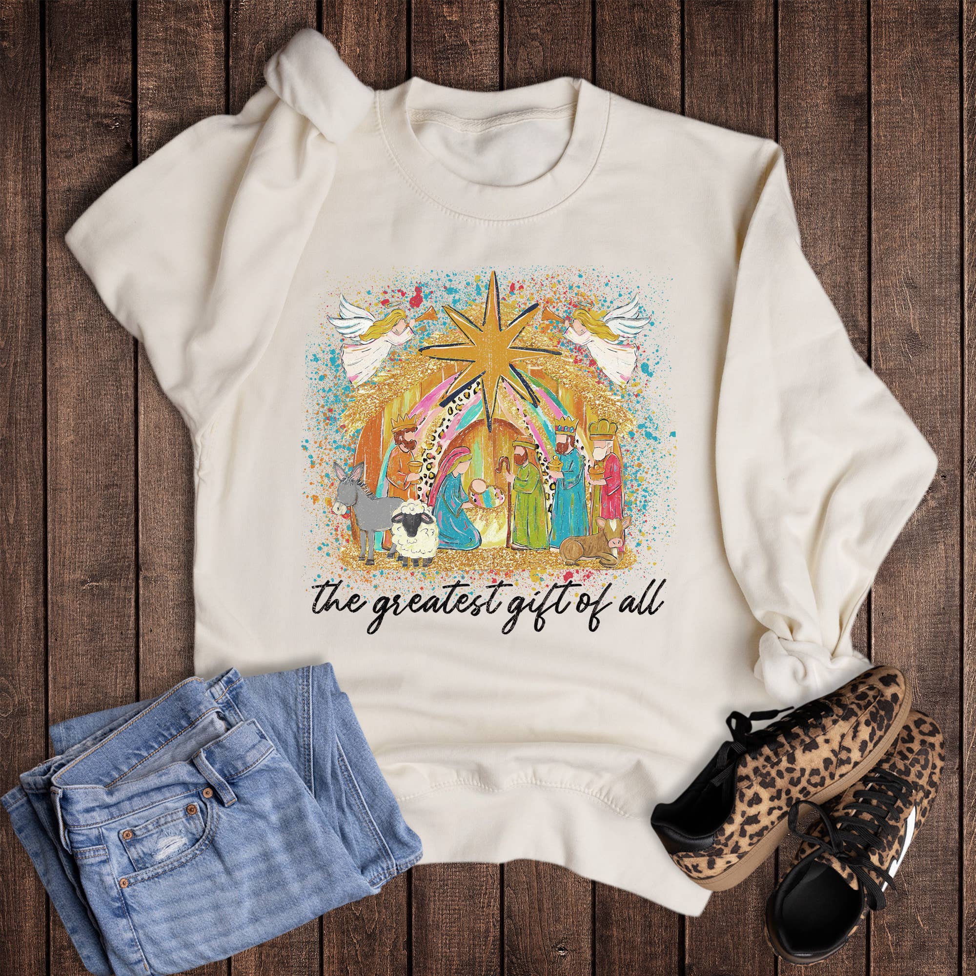 Christmas Manger Praying Cowboy-Sweatshirt im Großhandel